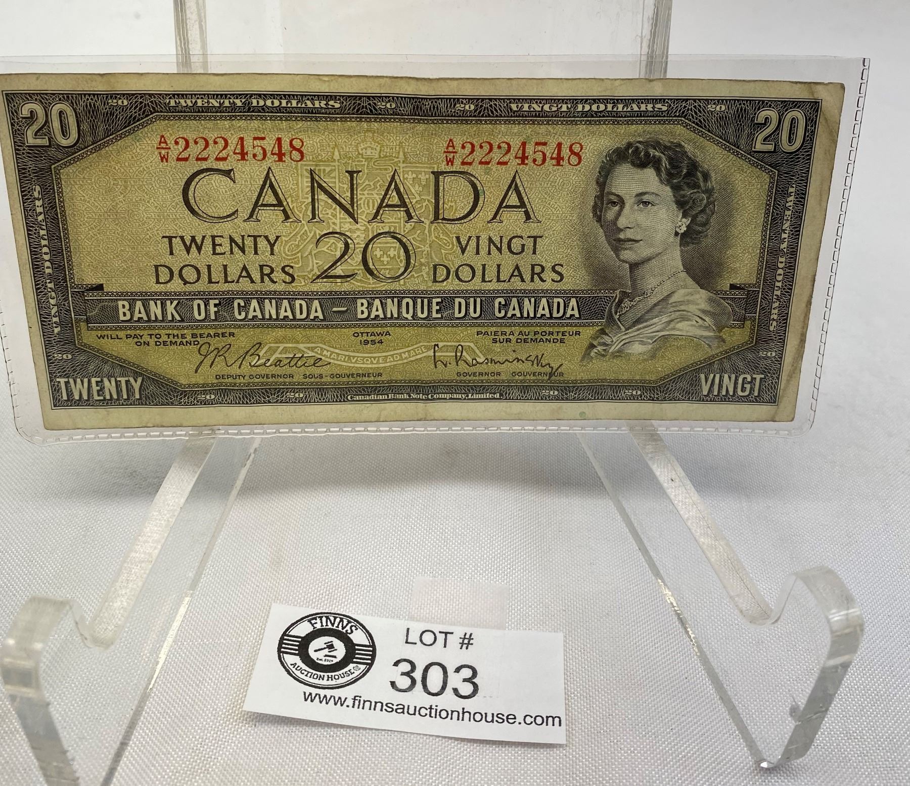 1954 Bank Of Canada $20 Bank Note In Note Holder