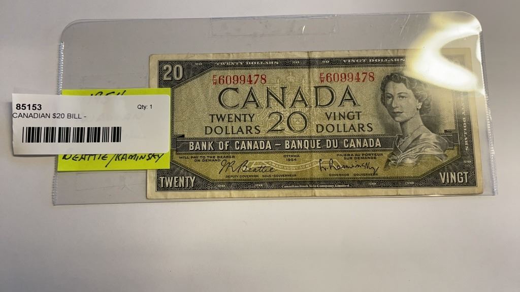 1954 CANADIAN $20 BILL - BEATTIE/RAMINSKY