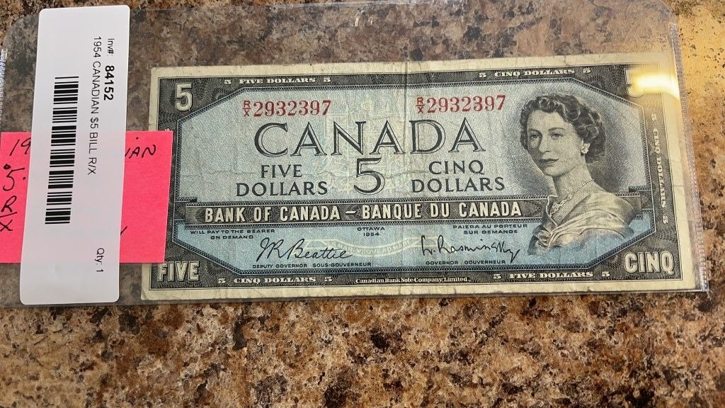 1954 CANADIAN $5 BILL R/X BEATTIE/RASMINKY