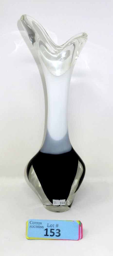 Rare Mid Century Modern Coquille Vase. Black Amethyst to White. 12.5" tall.