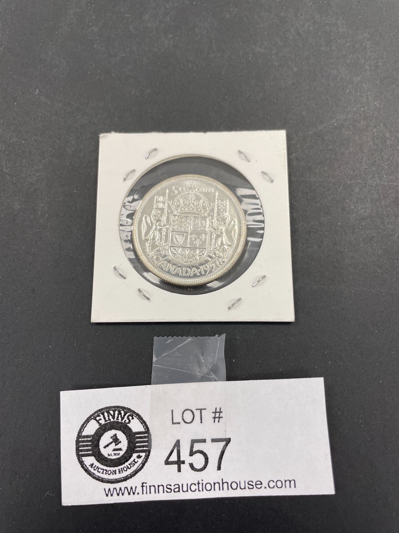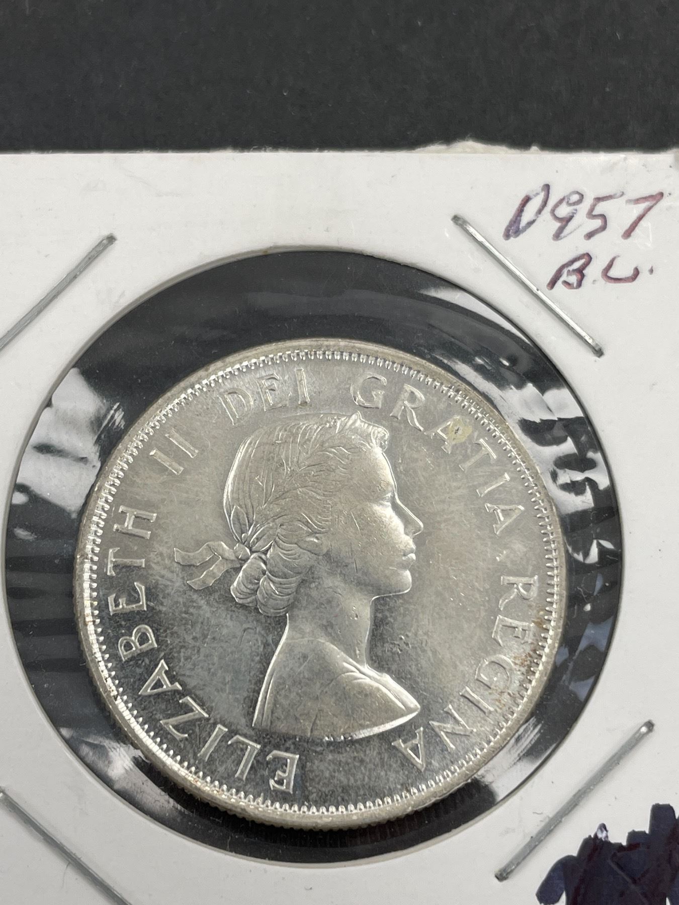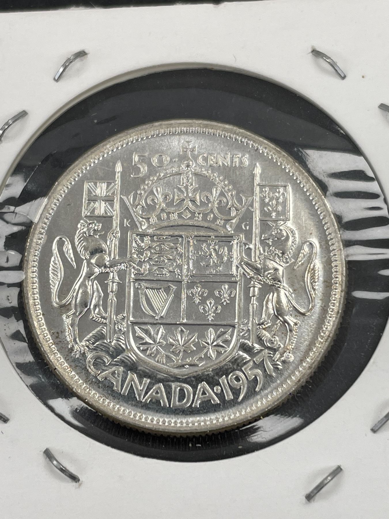 1957 BU Silver Canadian 50 Cent Piece In Holder