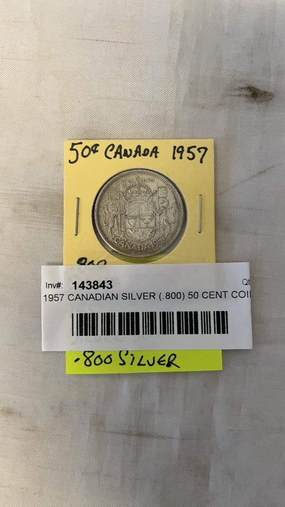 1957 CANADIAN SILVER (.800) 50 CENT COIN