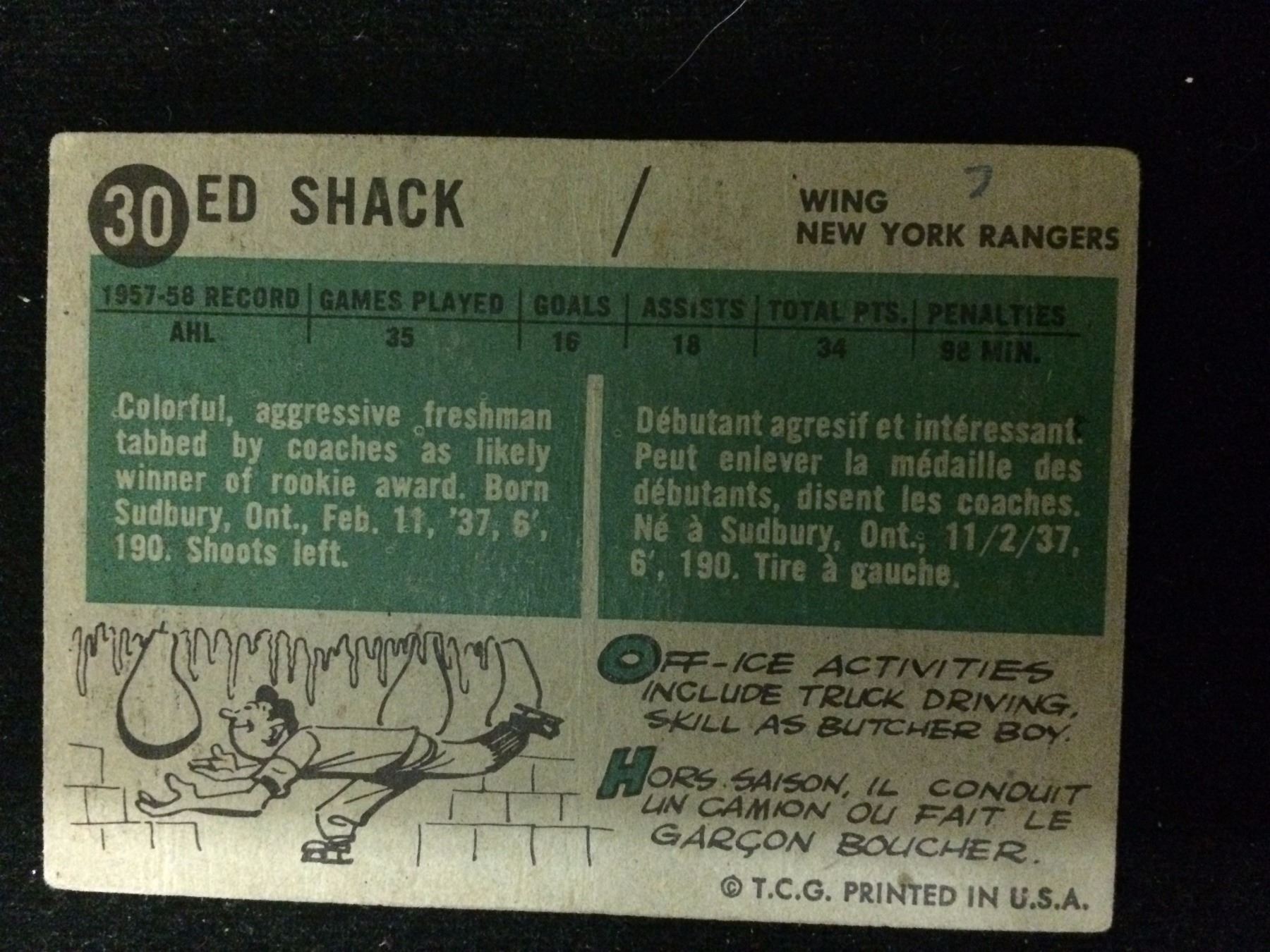 1958-59 EDDIE SHACK #30 TOPPS HOCKEY TRADING CARD