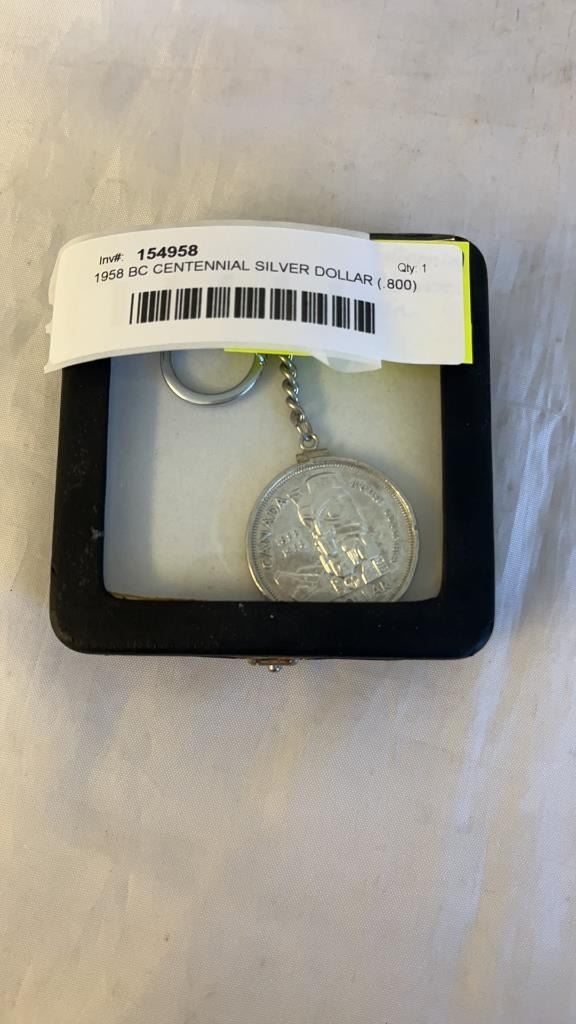 1958 BC CENTENNIAL SILVER DOLLAR (.800) KEYCHAIN