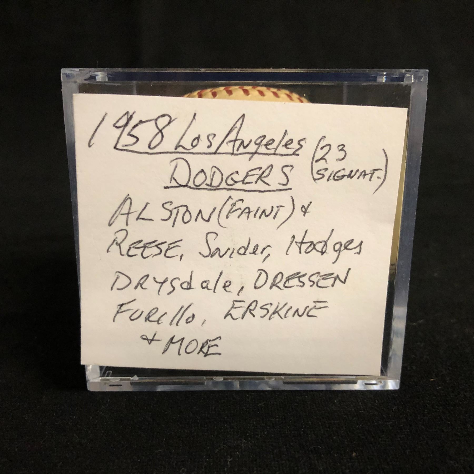 1958 LA DODGERS MULTI SIGNED BASEBALL w/ ALSTON, REESE, SNIDER, HODGES, DRYSDALE, DRESSEN...