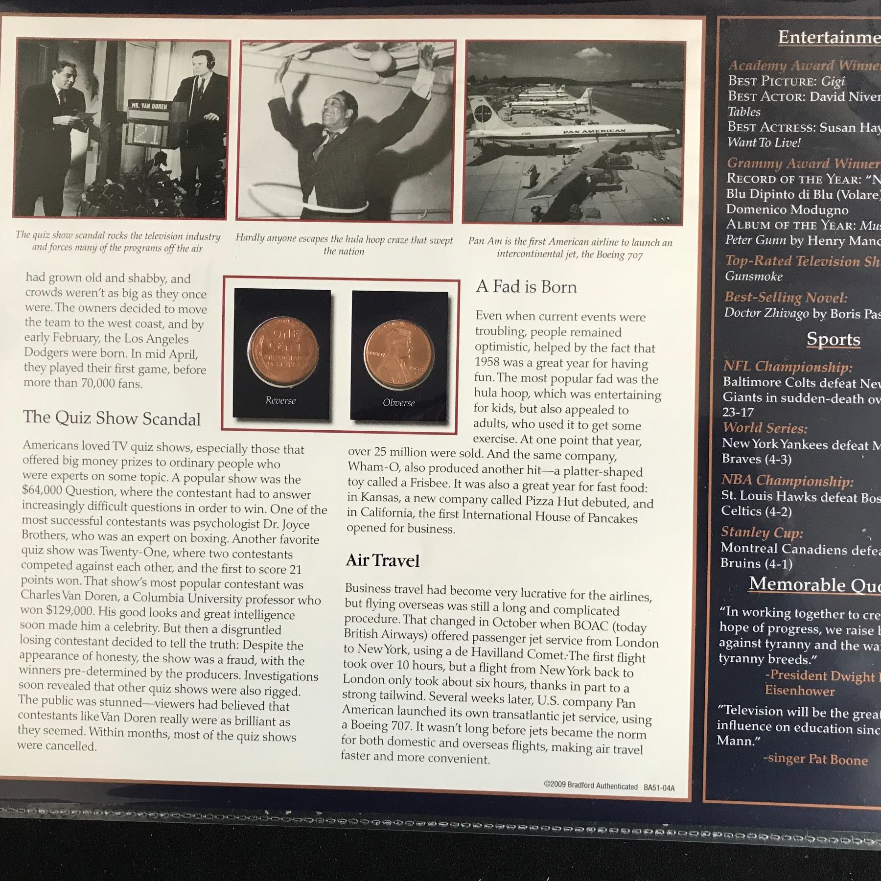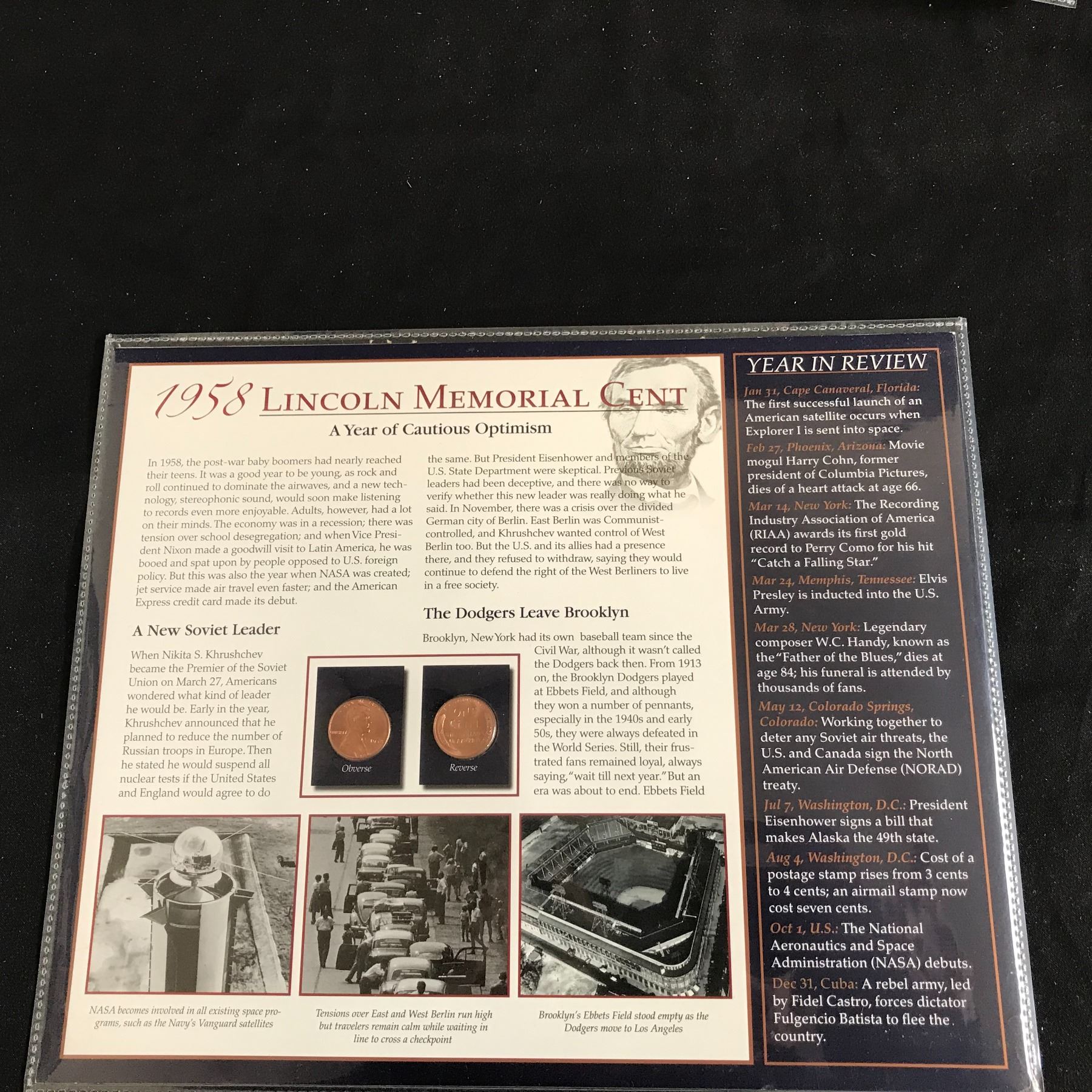 1958 LINCOLN MEMORIAL CENT WITH COMPLETE INFO CARD