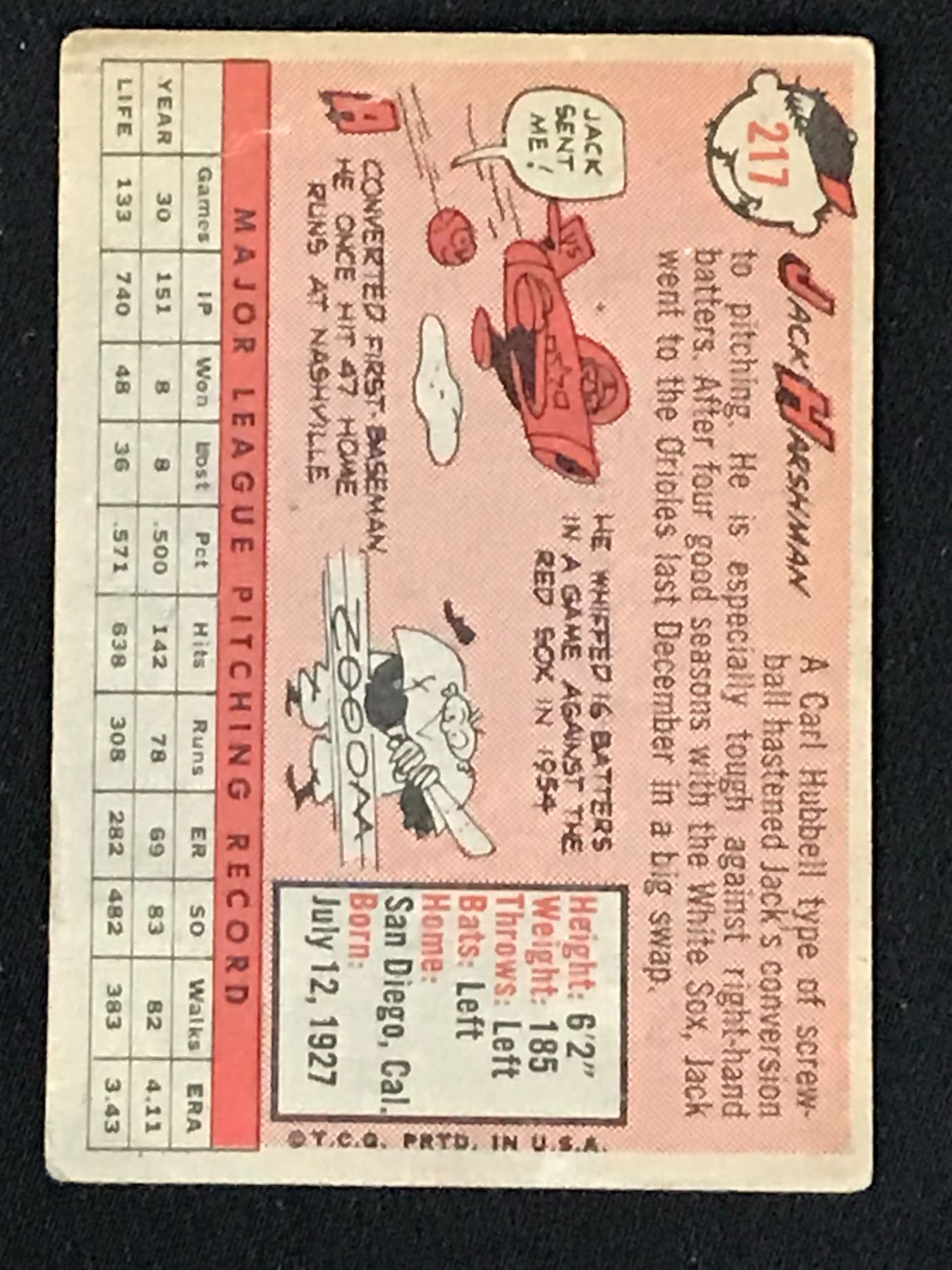 1958 TOPPS BASEBALL NO. 217 JACK HARSHMAN