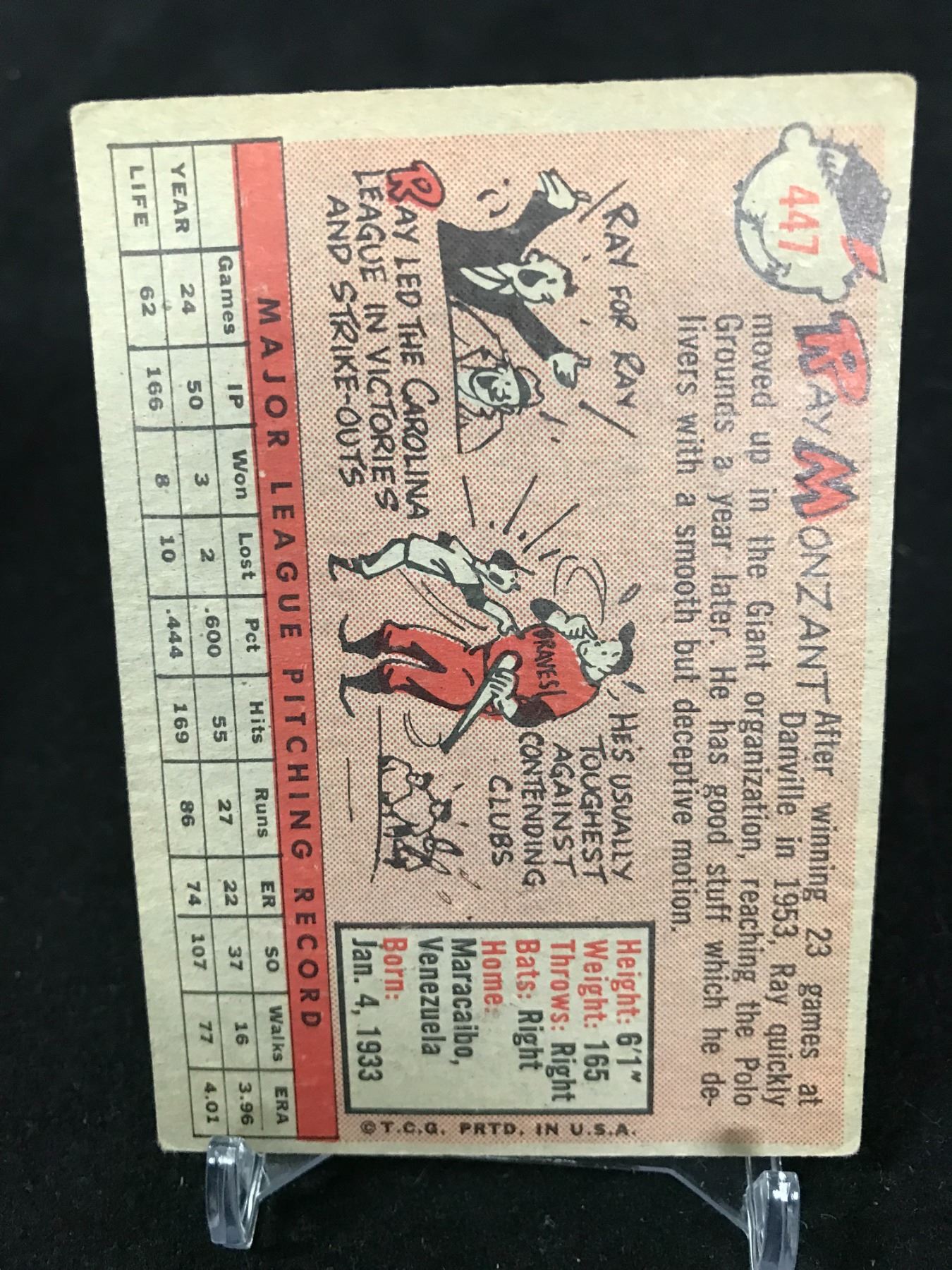 1958 TOPPS NO. 447 RAY MONZANT