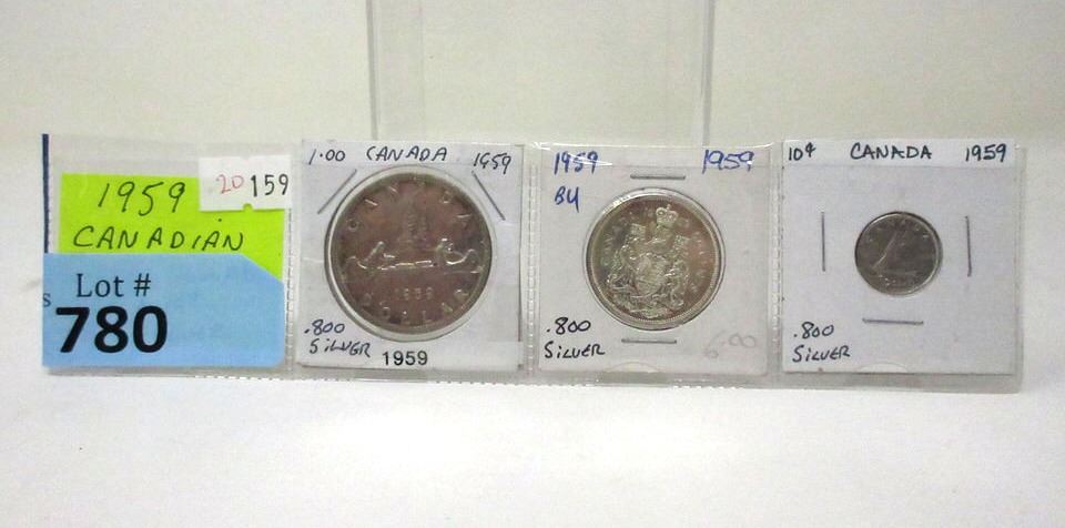 Dime, Half Dollar and Dollar.