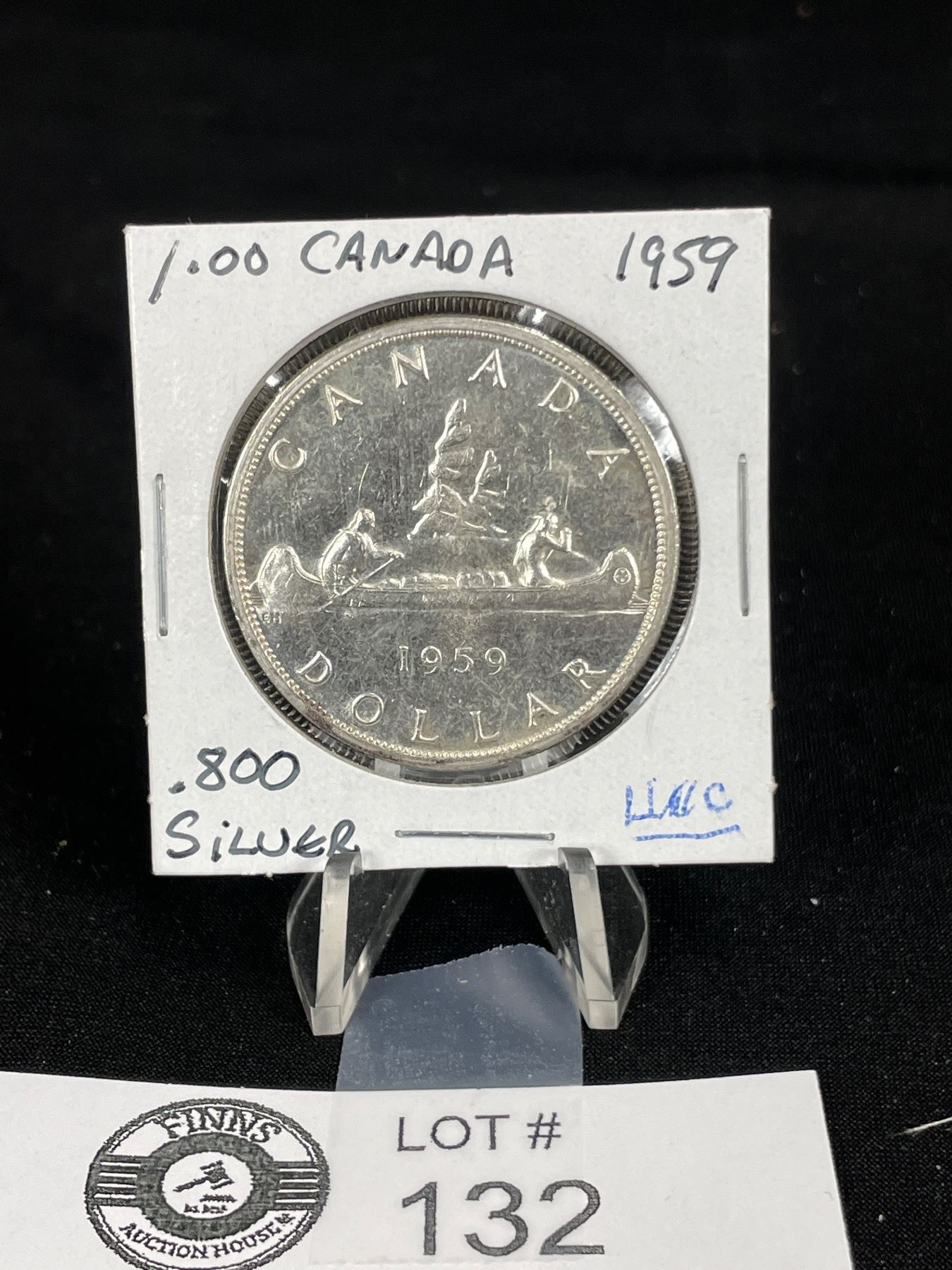 1959 Canadian Silver Dollar in 2x2 Holder. Coin in Great Shape