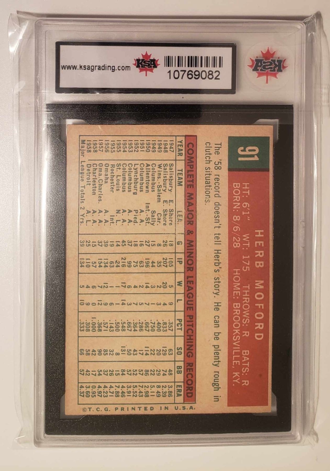 1959 TOPPS NO.91 HERB MOFORD ROOKIE CARD KSA GRADED 6