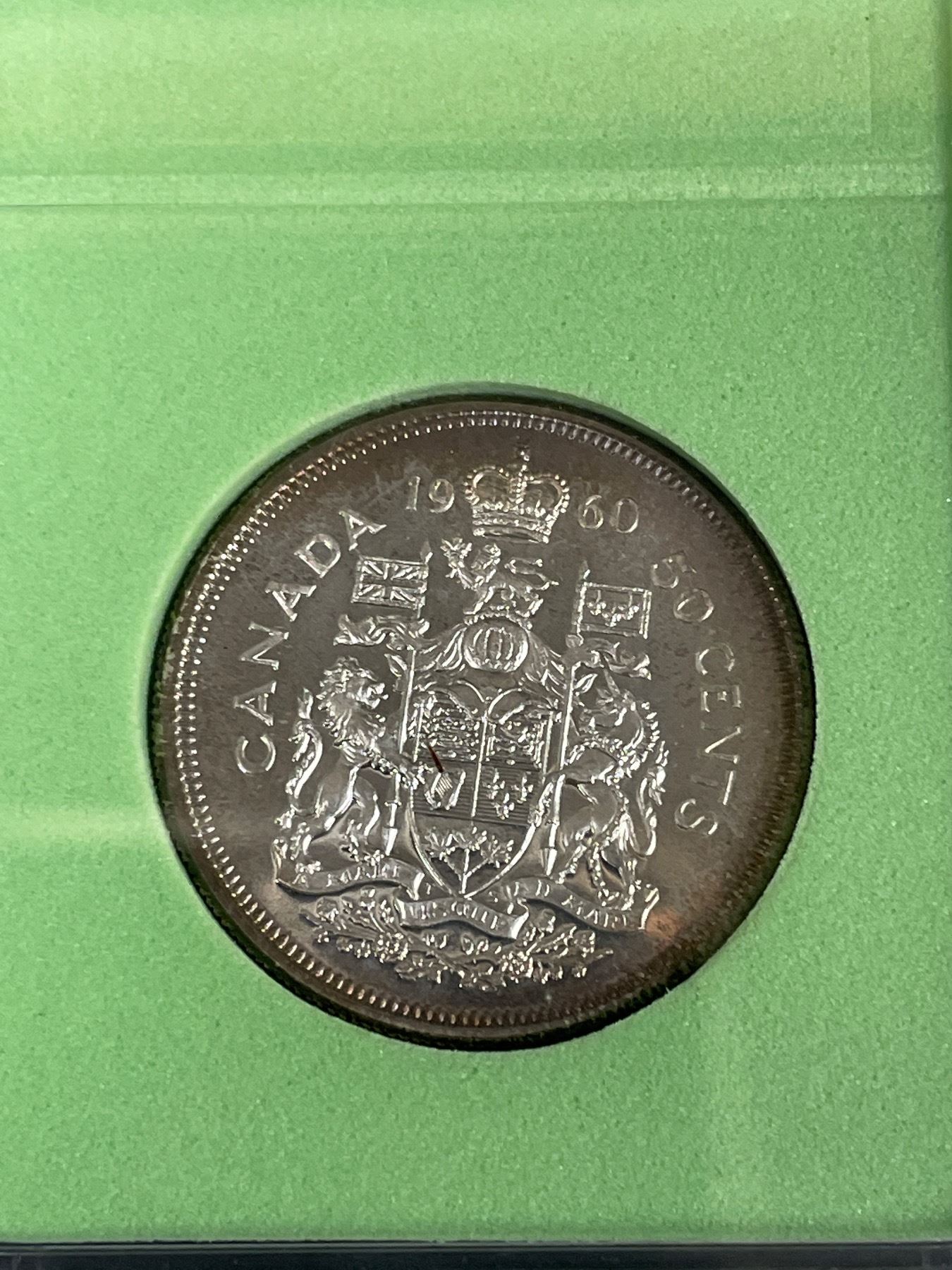 1960 Canadian Silver 50 Cent Piece in Hard Case