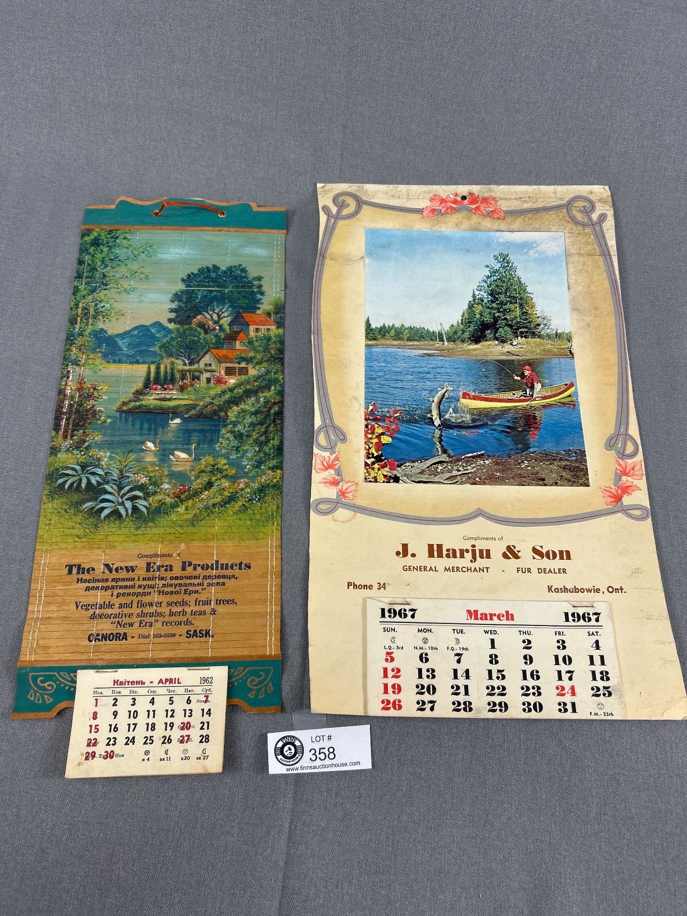 1960's Advertising Calendars - Ukranian "The New Era Products" Canora,Sask & J.Harju Merchant/Fur Dealer, Kashabowie, Ontario