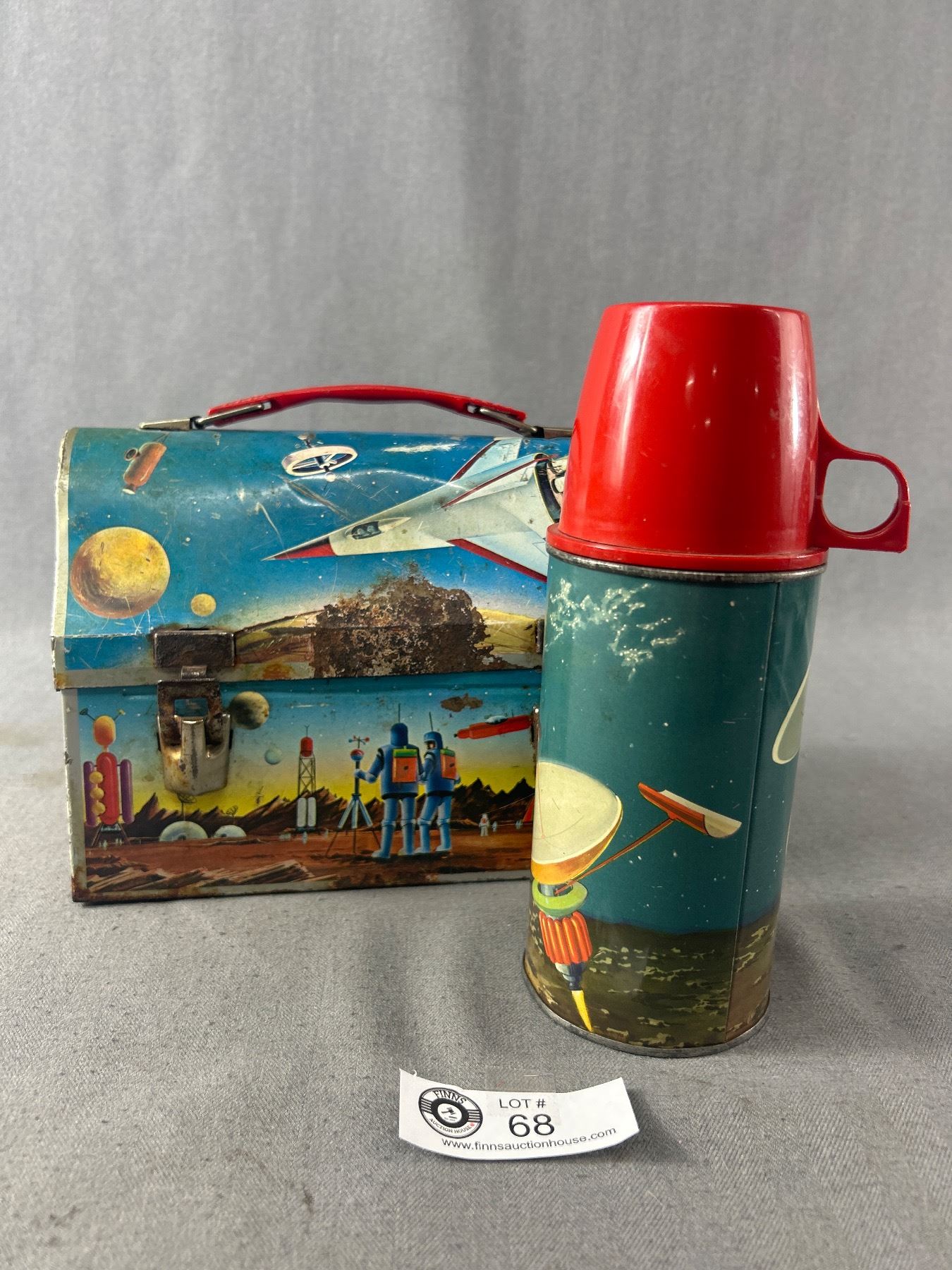 1960's Space Rocket Metal Dome Lunchbox w/Thermos