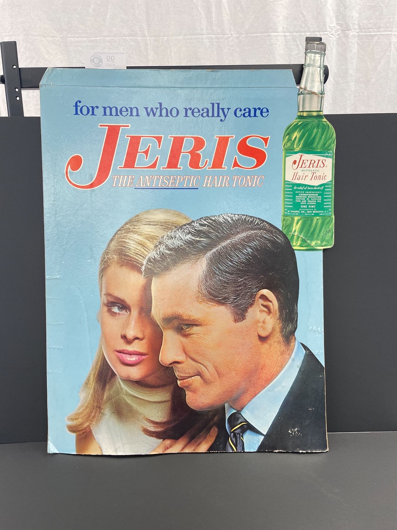 1960s Jeris Hair Tonic Cardboard Advertising 17 x 22"