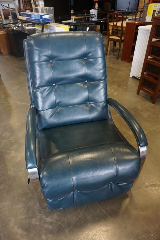 1960s LAZBOY METAL FRAME LEATHER ROCKING RECLINER