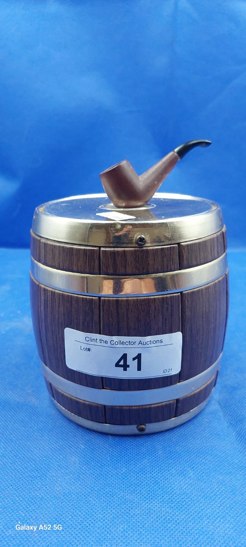 1960s pipe tobacco humidor barrell, nice condition 6.5" long