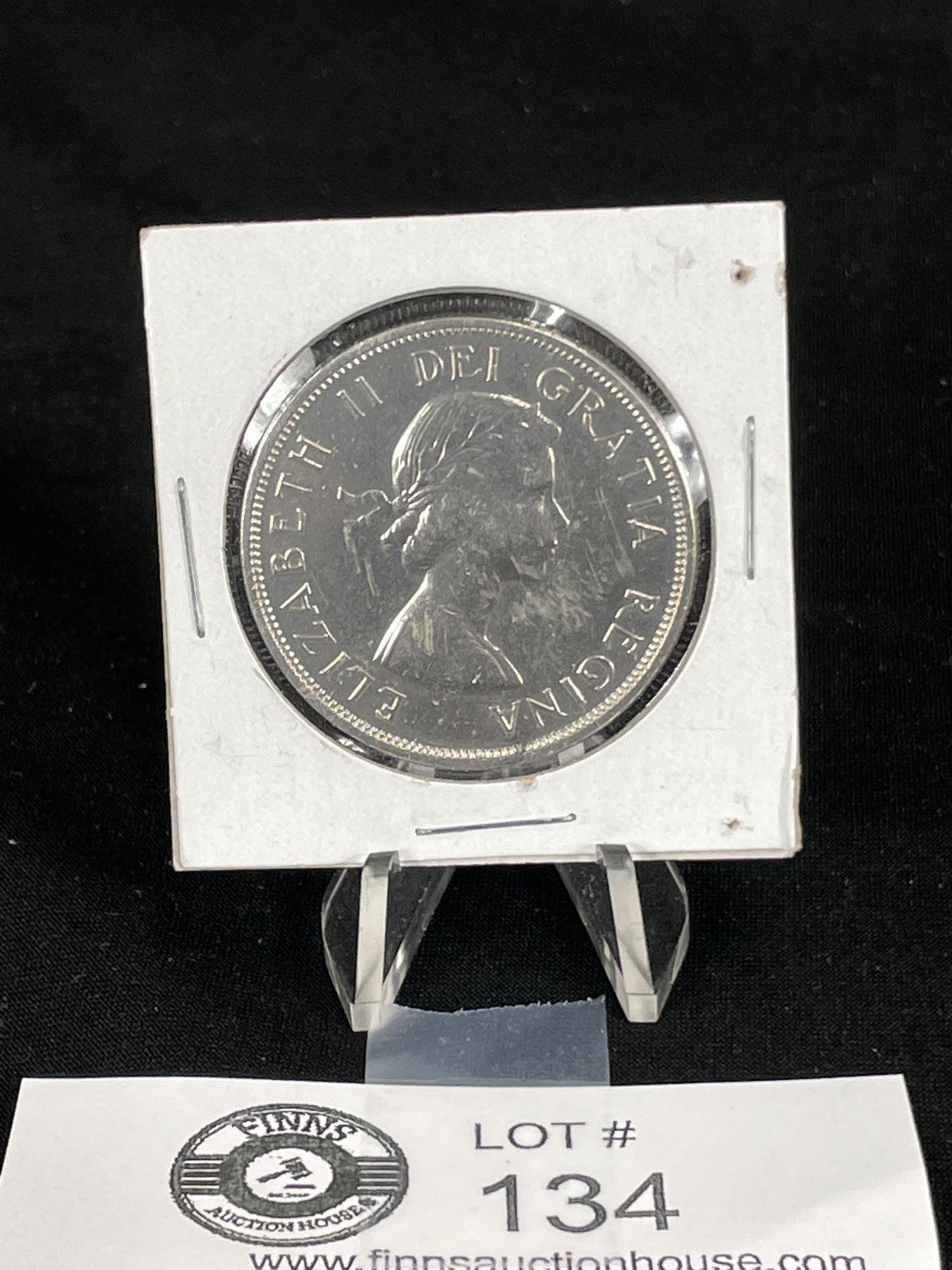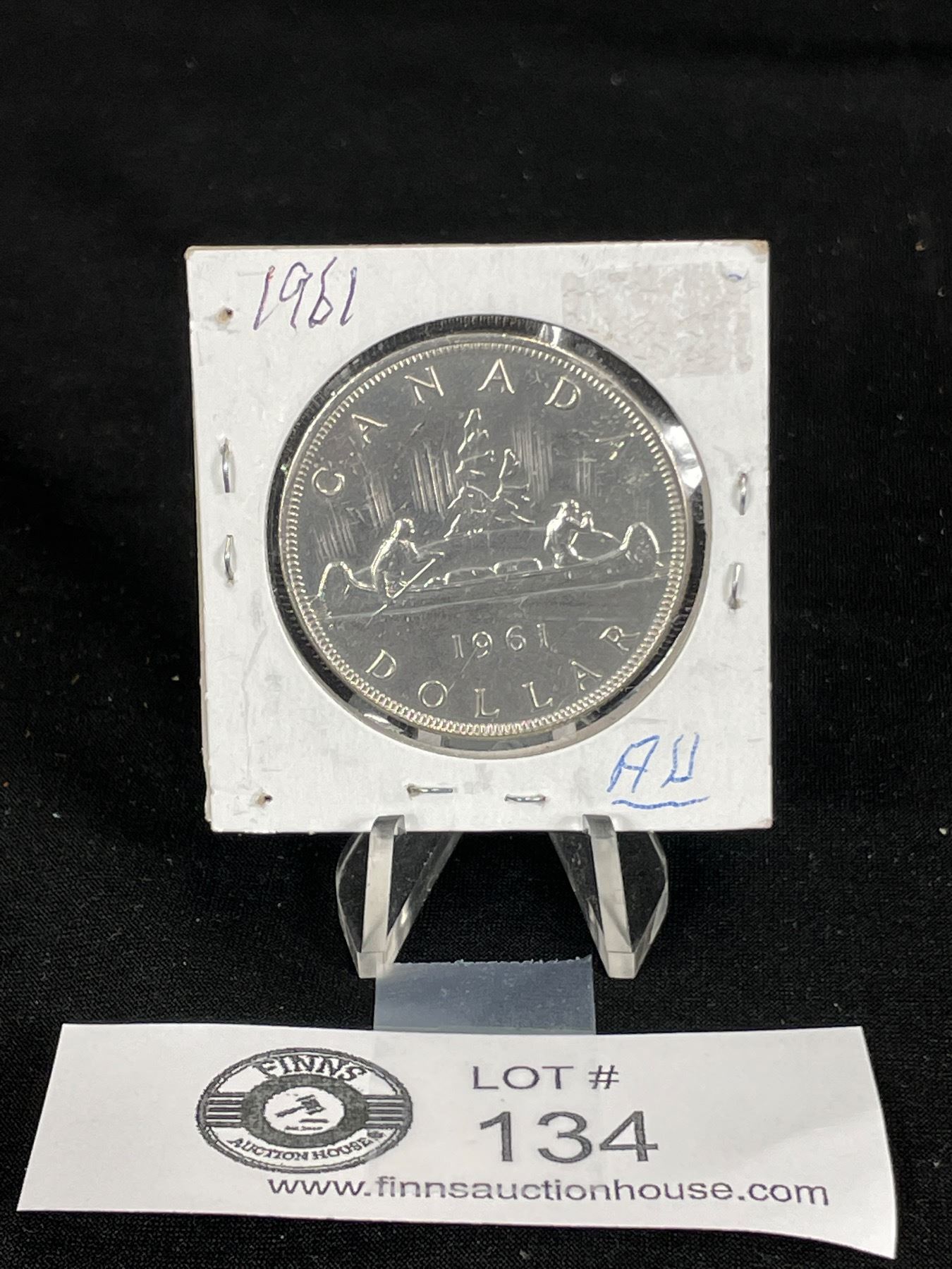 1961 Canadian Silver Dollar in 2x2 Holder. Coin in Great Shape