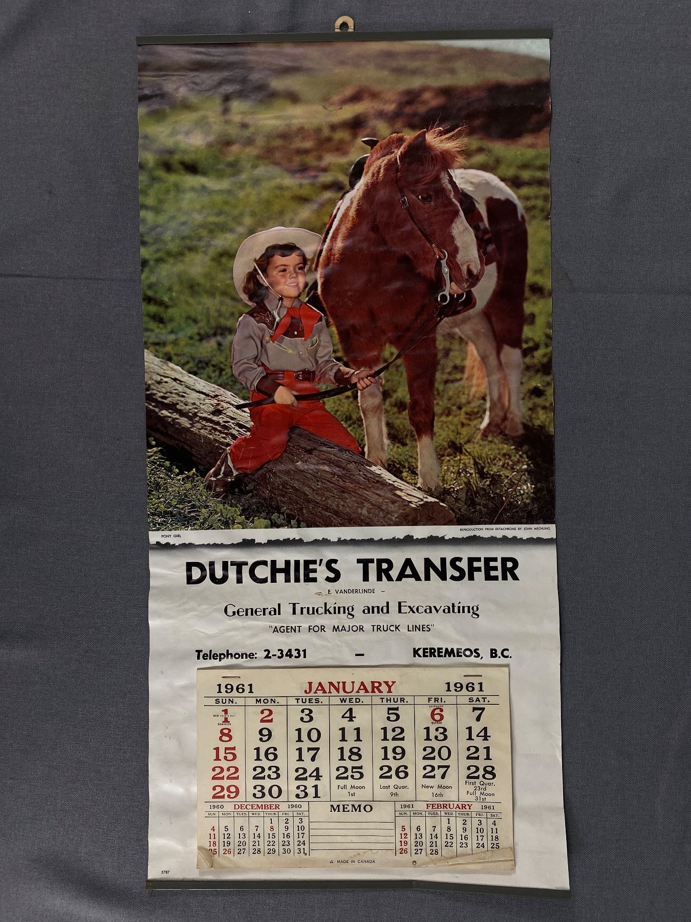 1961 Dutchies Transfer. Keremeos BC, Approx. 11" x 22 1/2"