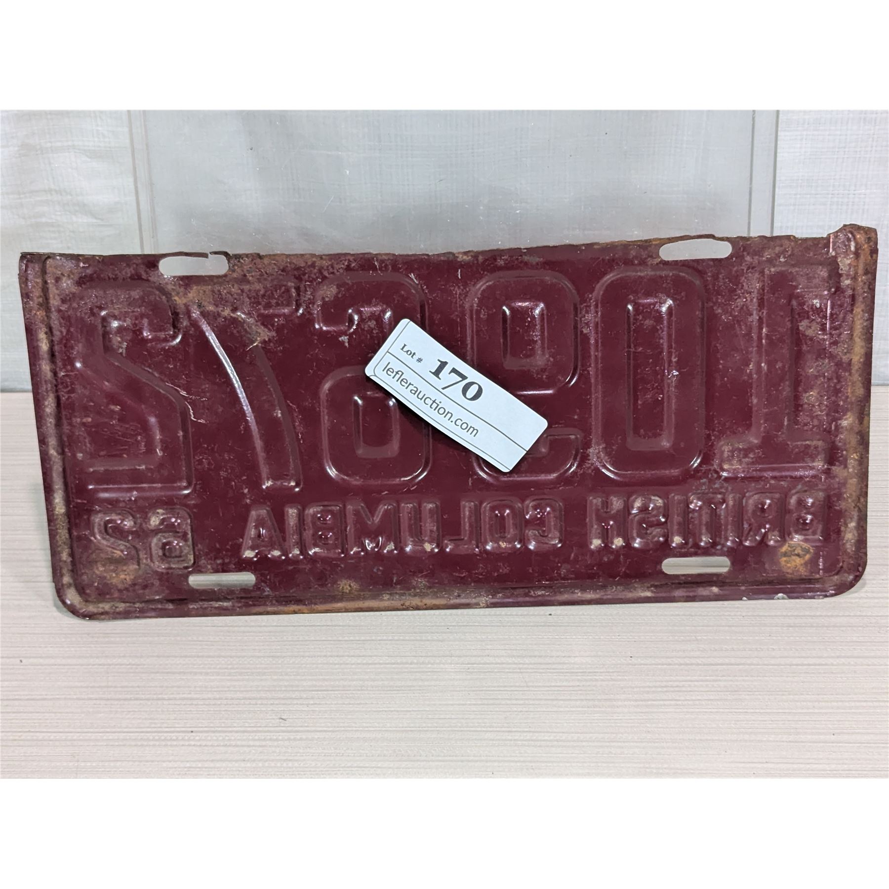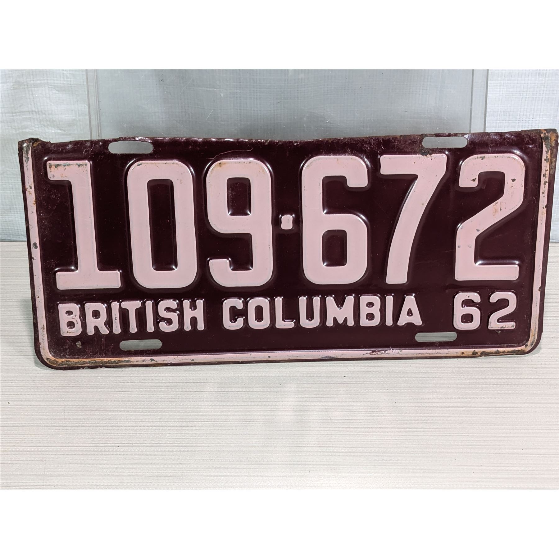 1962 BRITISH COLUMBIA LICENSE PLATE