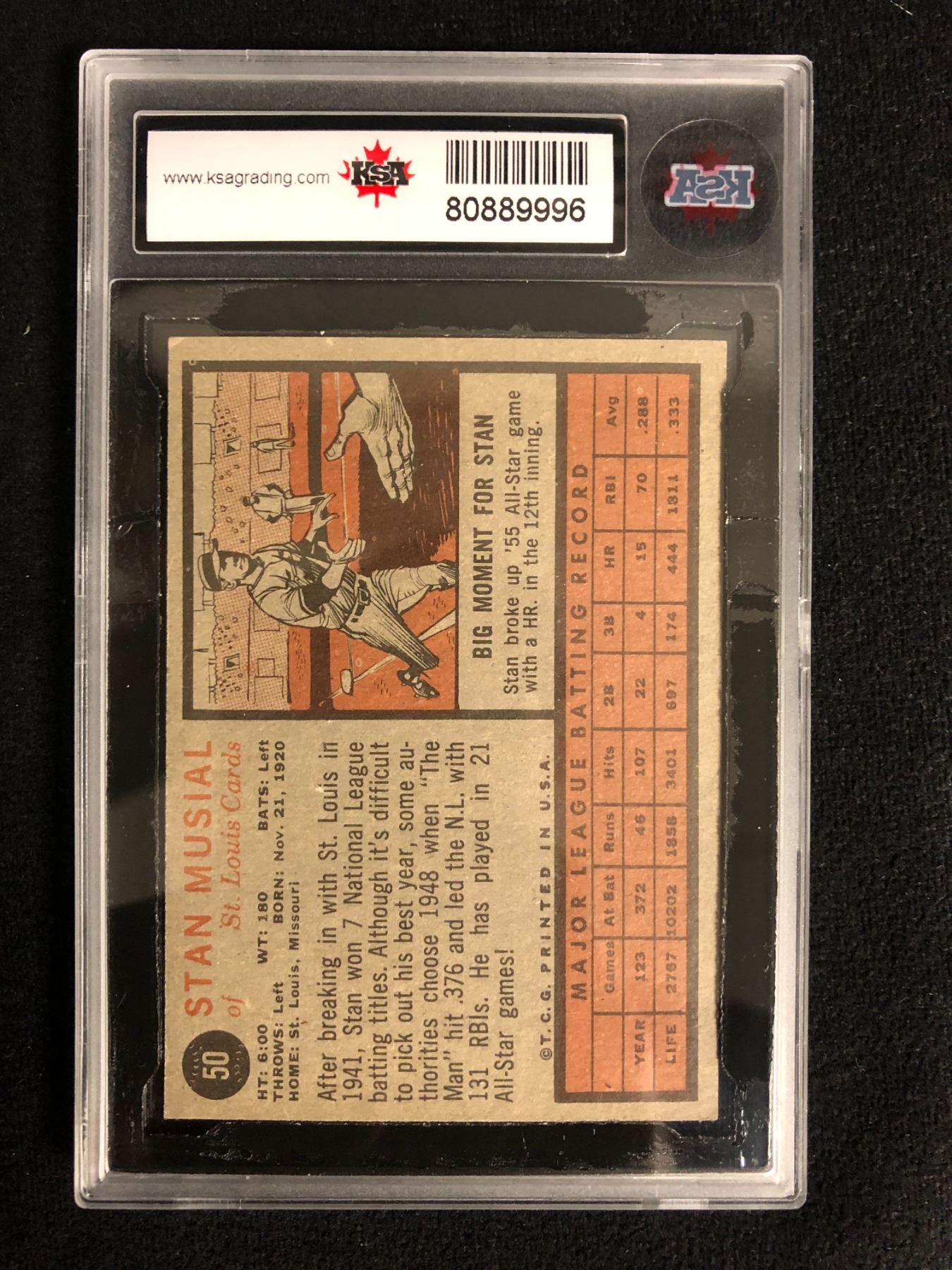 1962 TOPPS #50 STAN MUSIAL (7 NM)