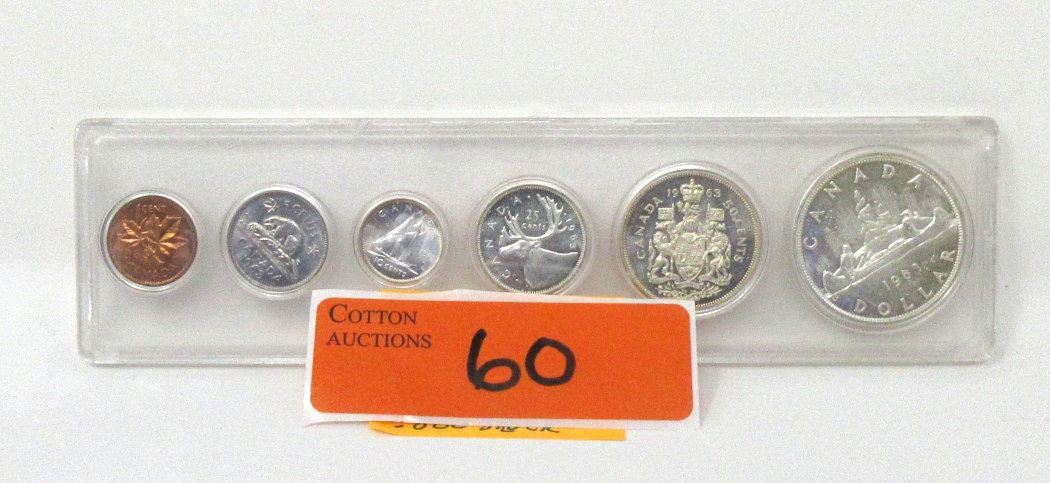 Uncirculated condition. Dime through Dollar are .800 Silver.