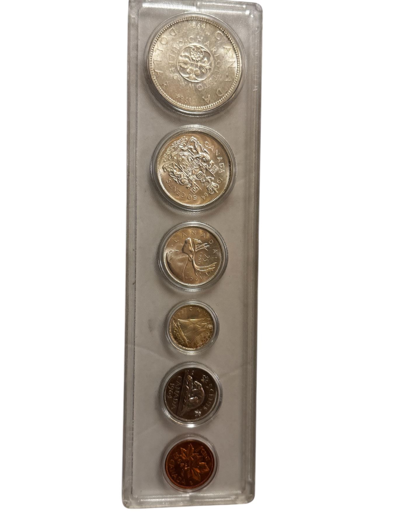 1964 Canadian Silver Coin Set: Dollar, 50cent, Quarter, Dime, Nickel, & Penny