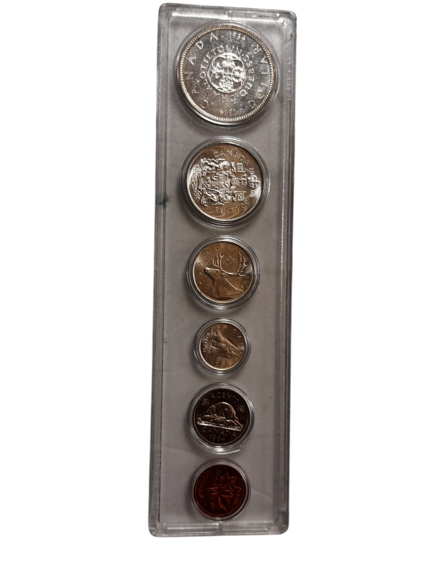 1964 Canadian Silver Coin Set: Dollar, 50cent, Quarter, Dime, Nickel, & Penny