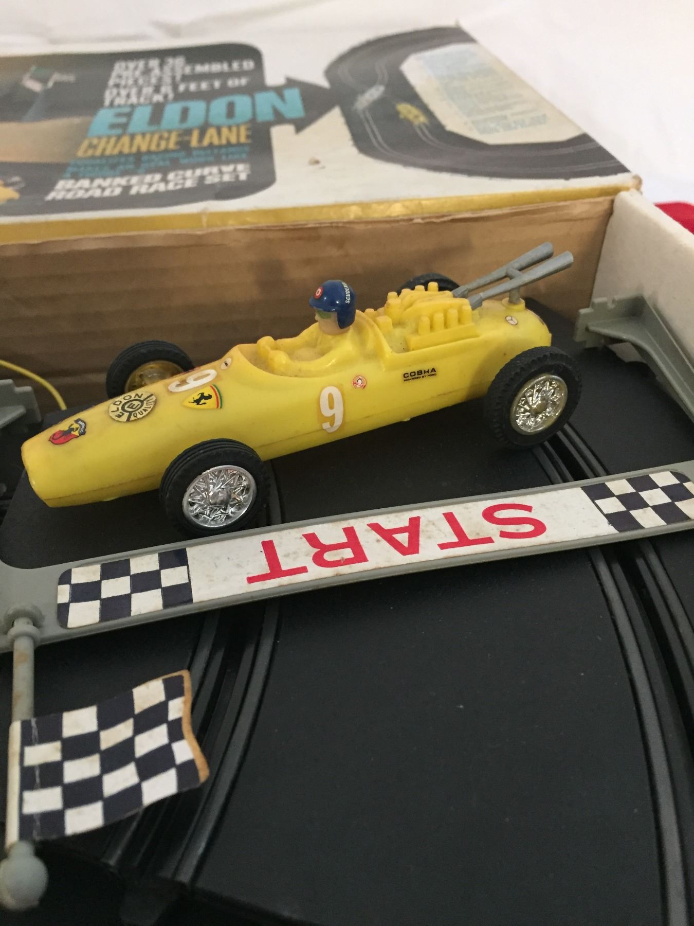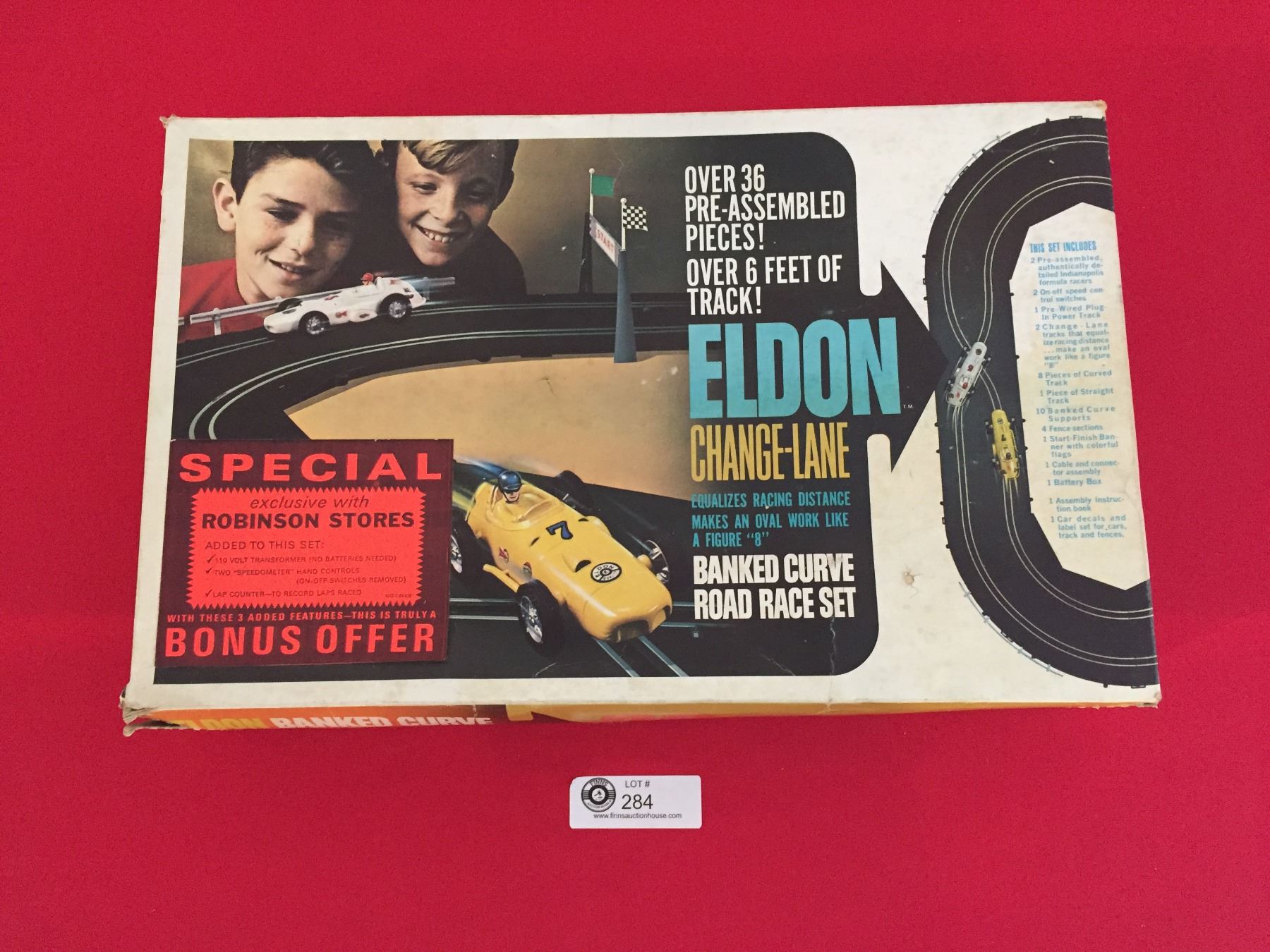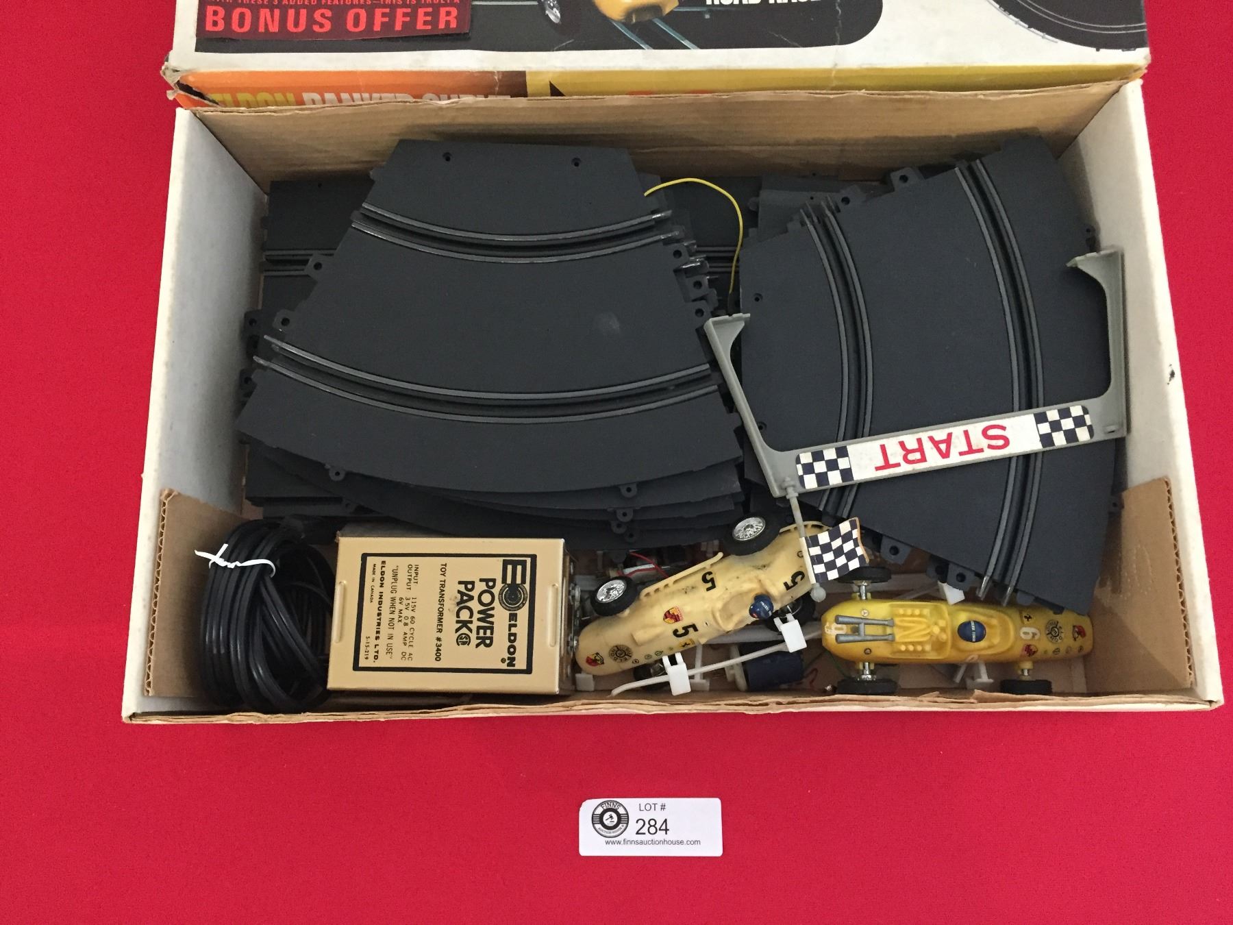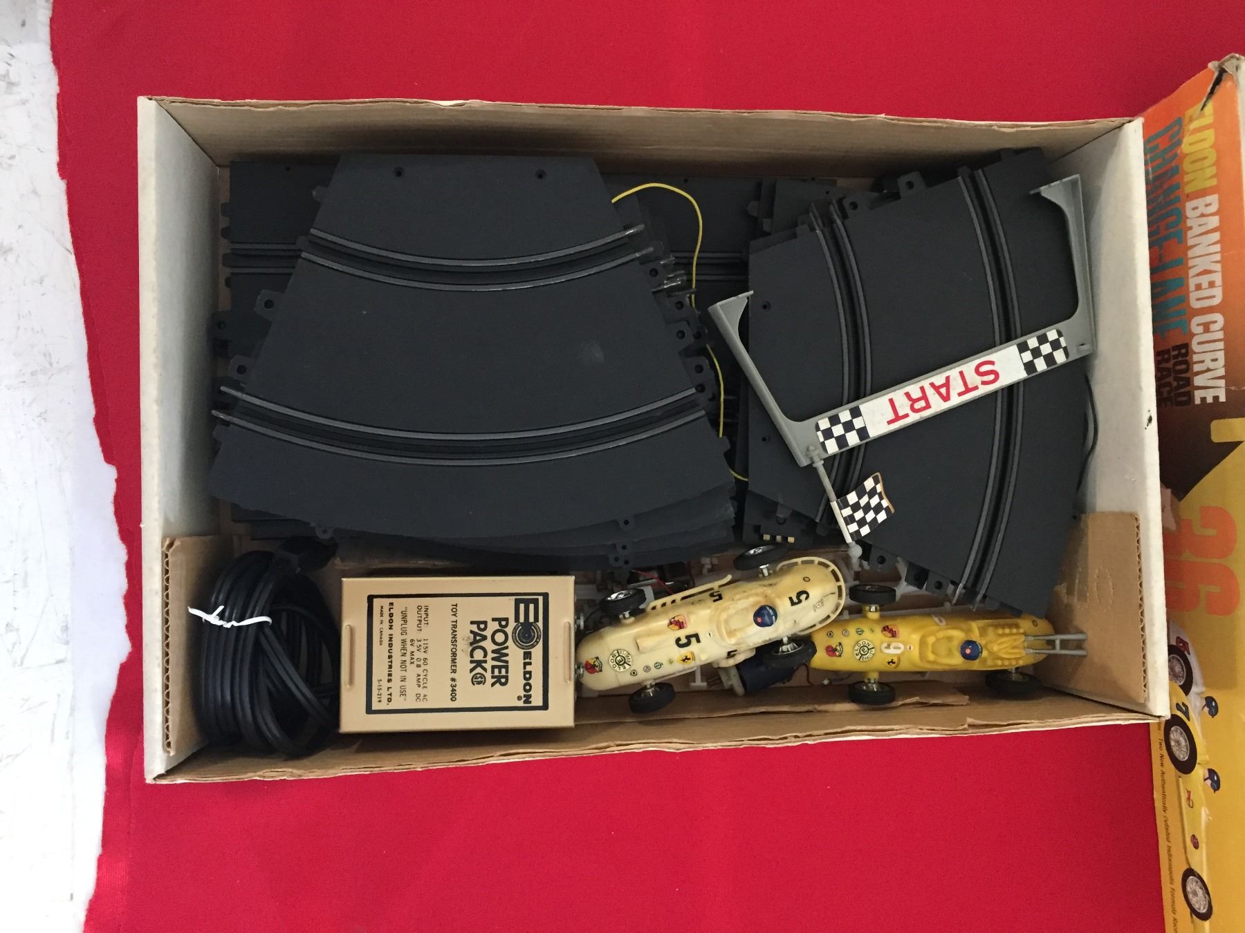 1964 Eldon Banked Curve, Change a Lane Road Race Set. Complete with both cars