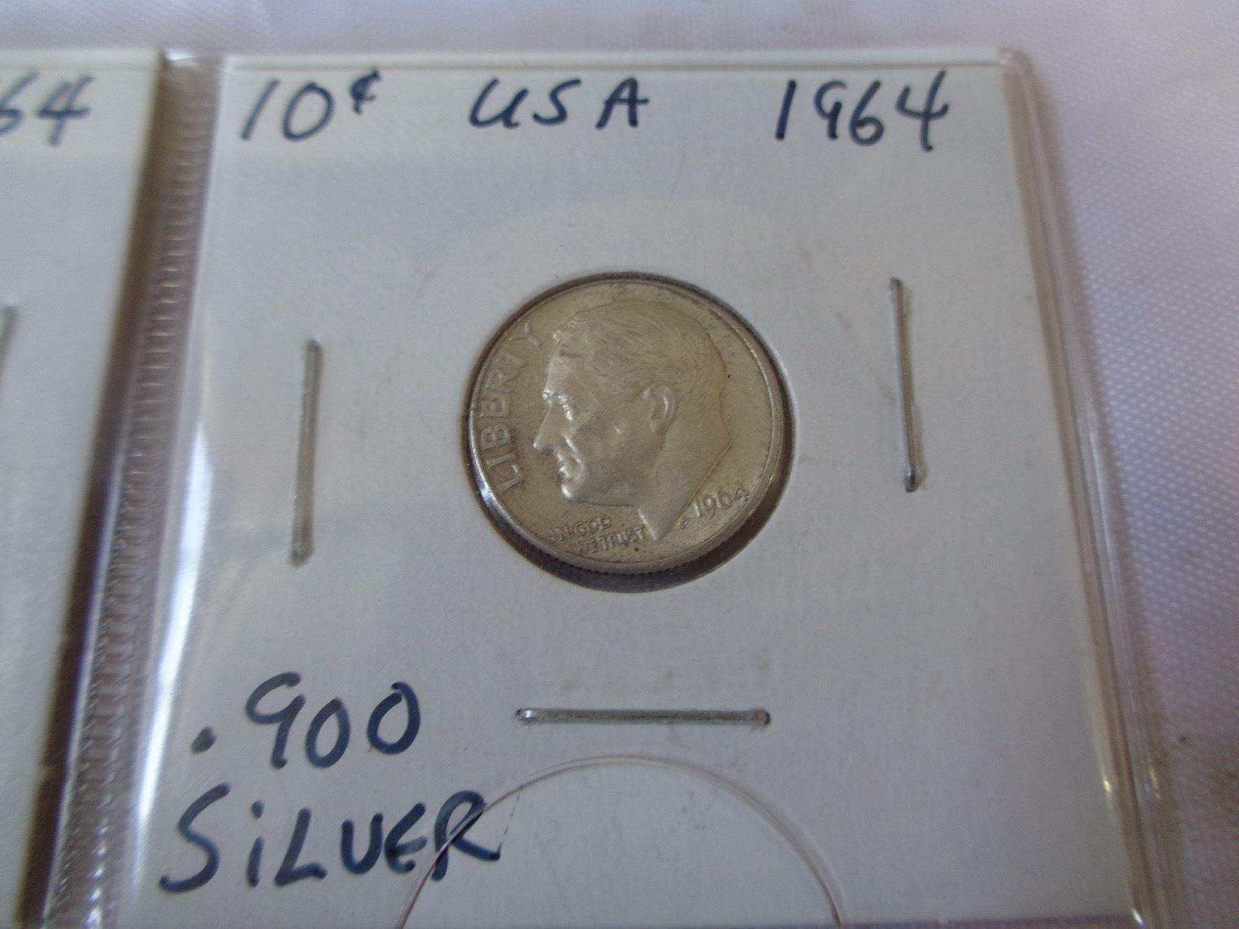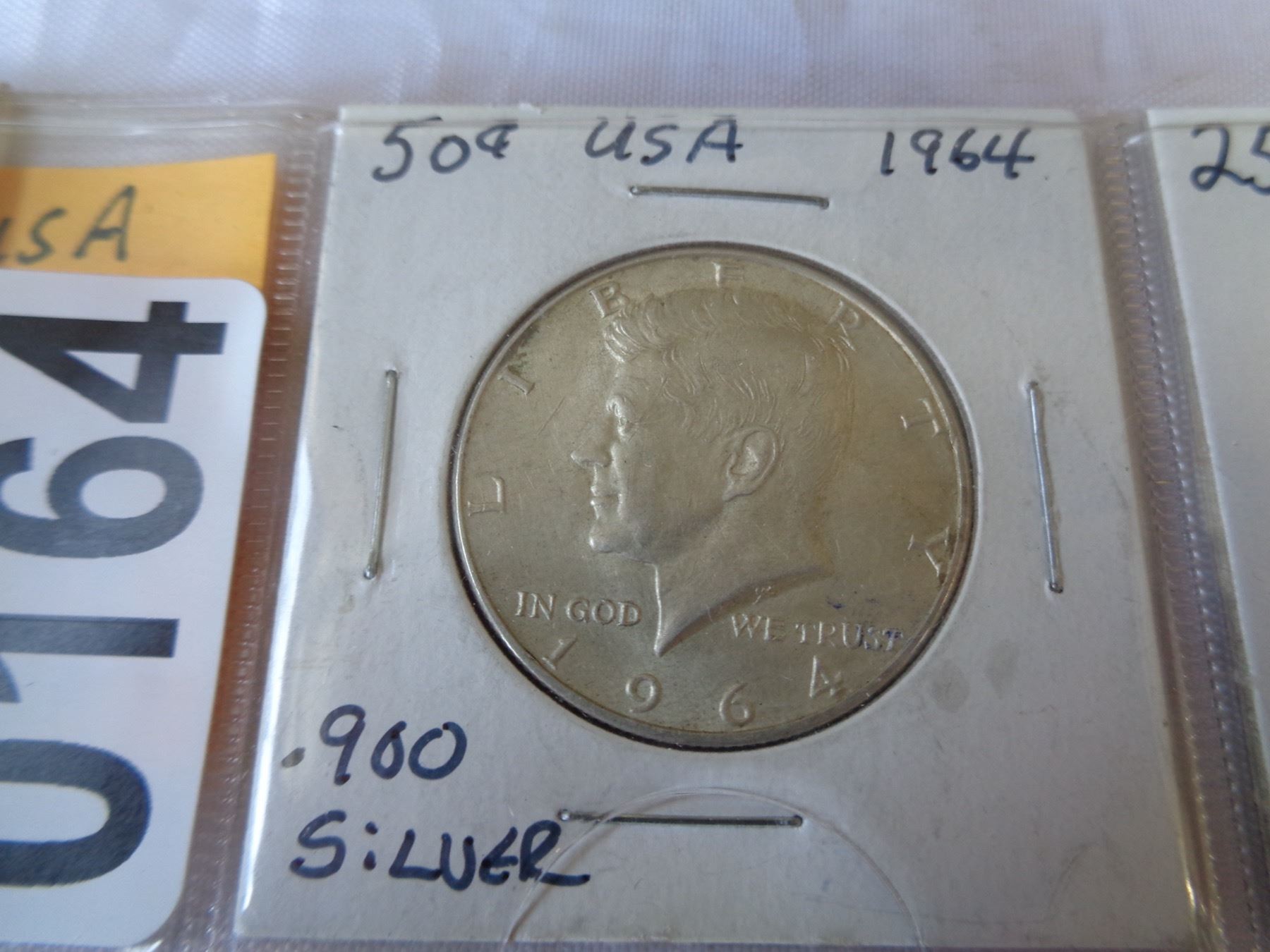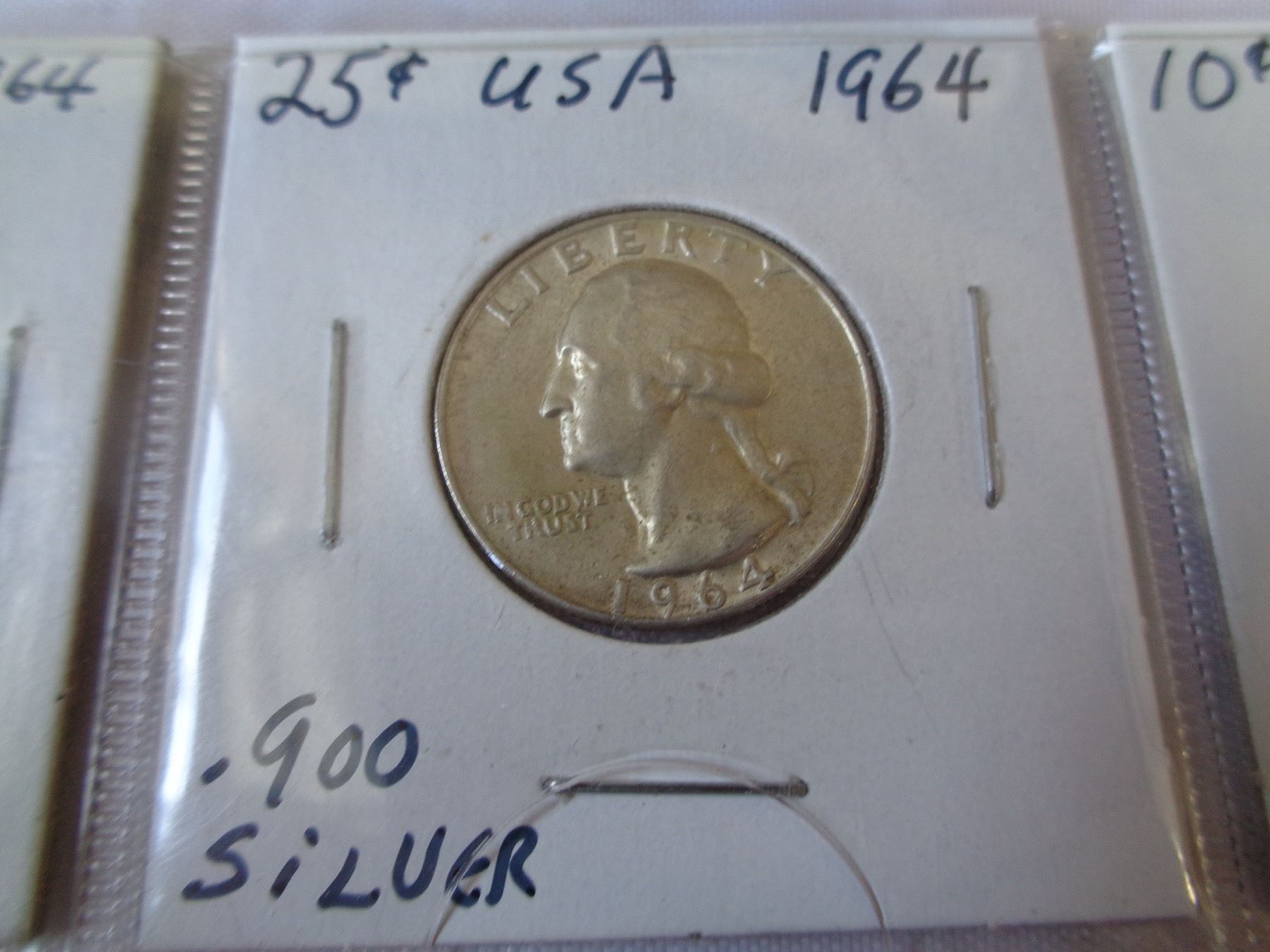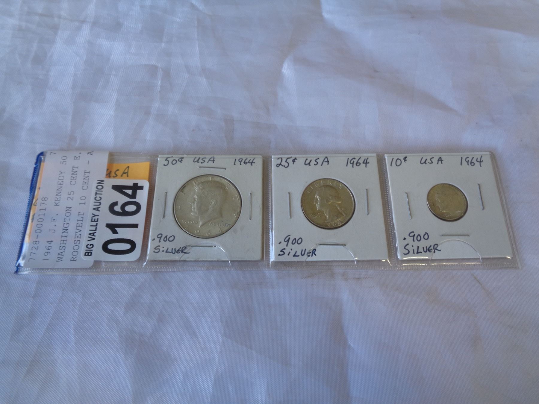 1964 J.F. KENNEDY 50 CENT G. WASHINGTON 25 CENT E. ROOSEVELT 10 CENT - ALL .900 SILVER