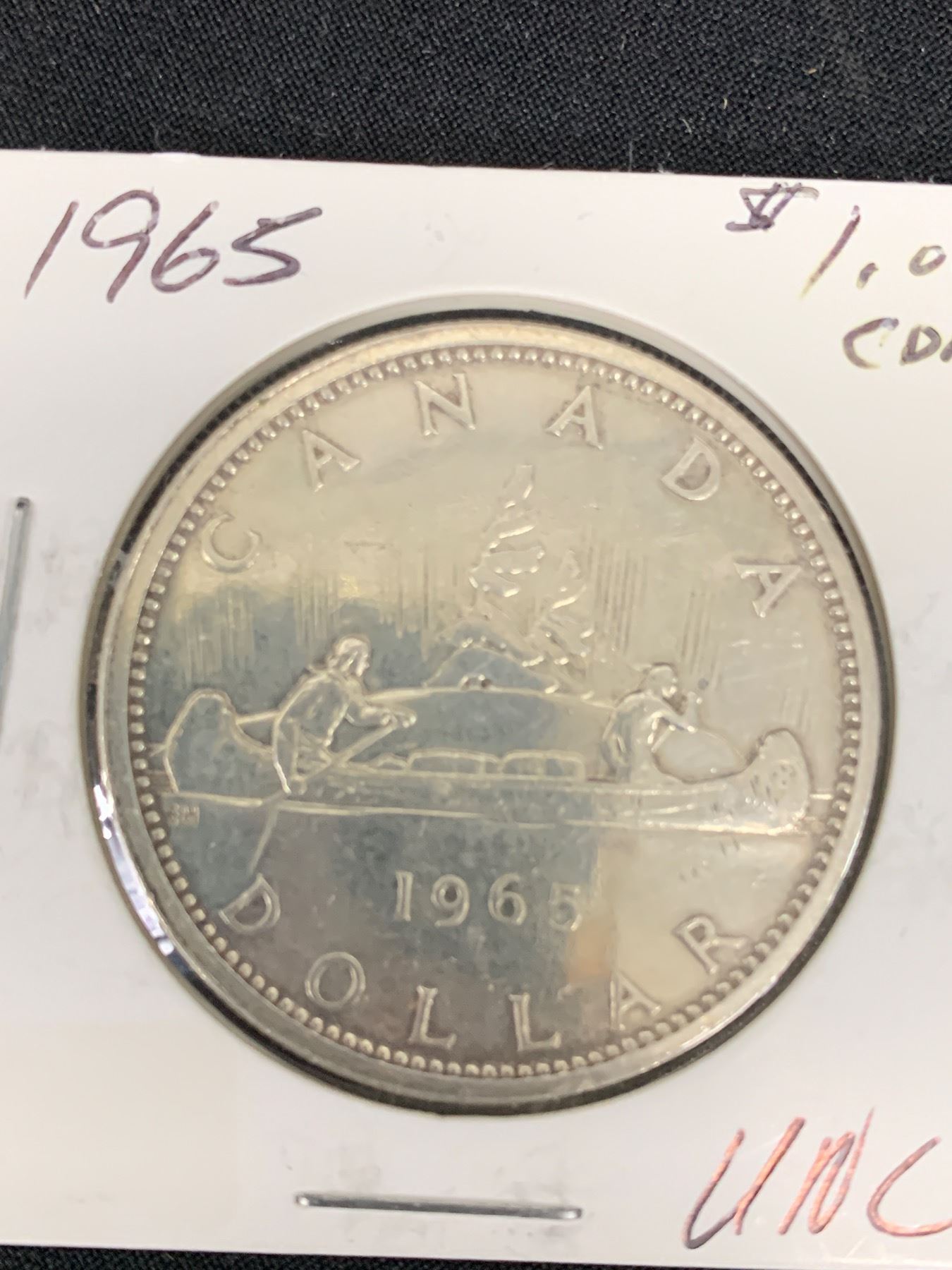 1965 Canadian Silver Dollar in Cardboard Holder