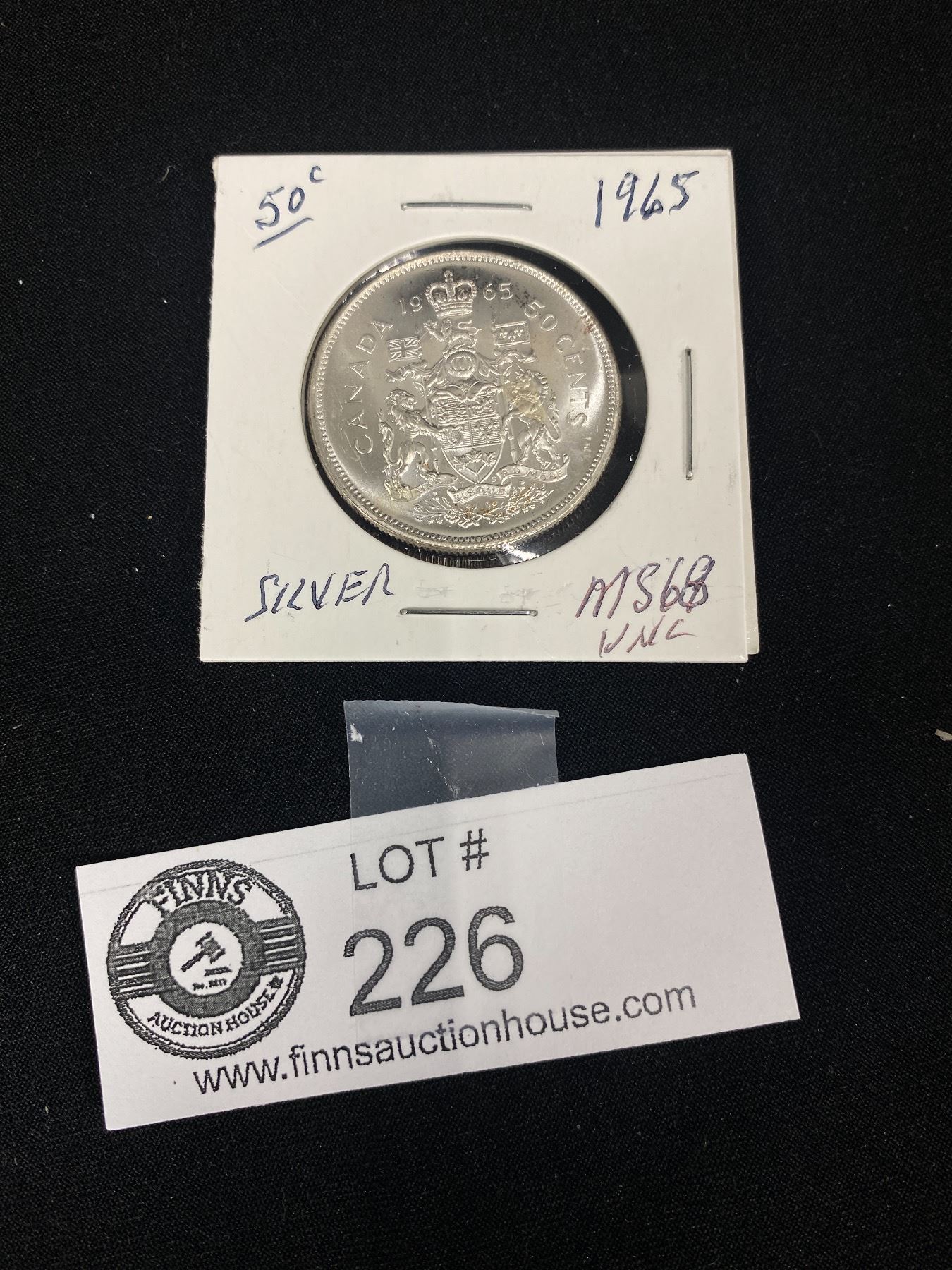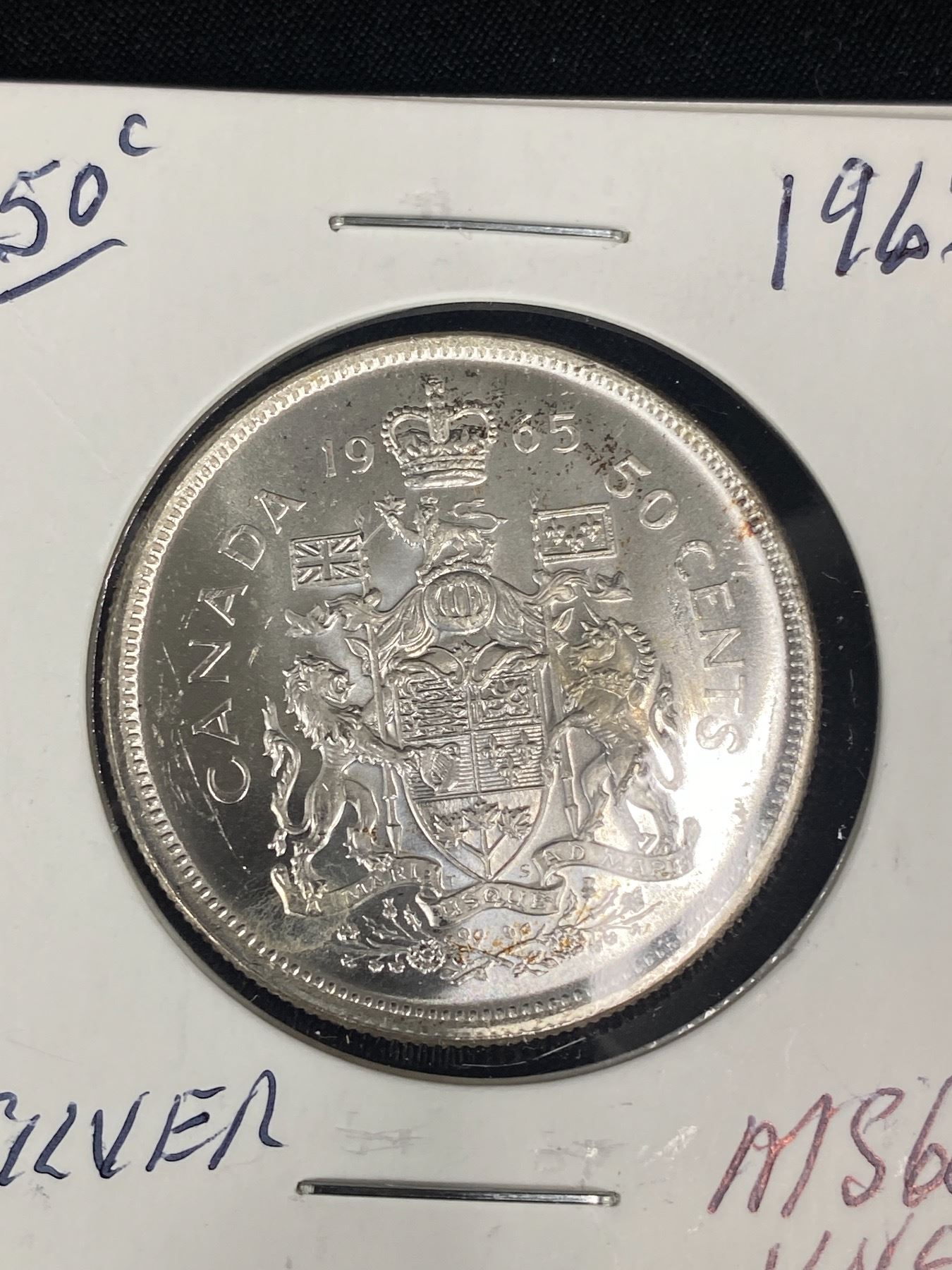 1965 Silver Canadian 50 Cent Coin In Cardboard Holder