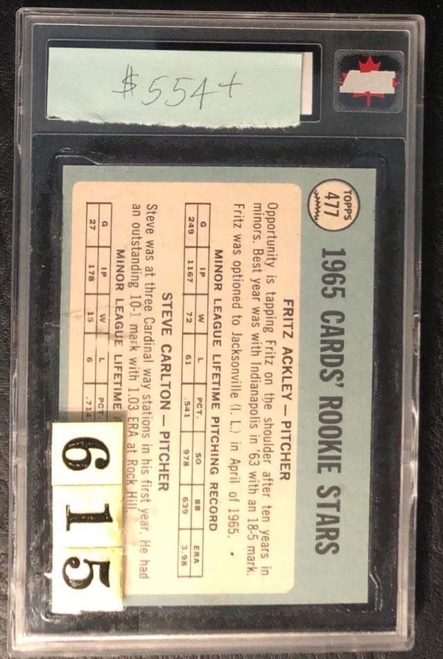 1965 TOPPS #477 STEVE CARLTON RC (KSA 8.5)
