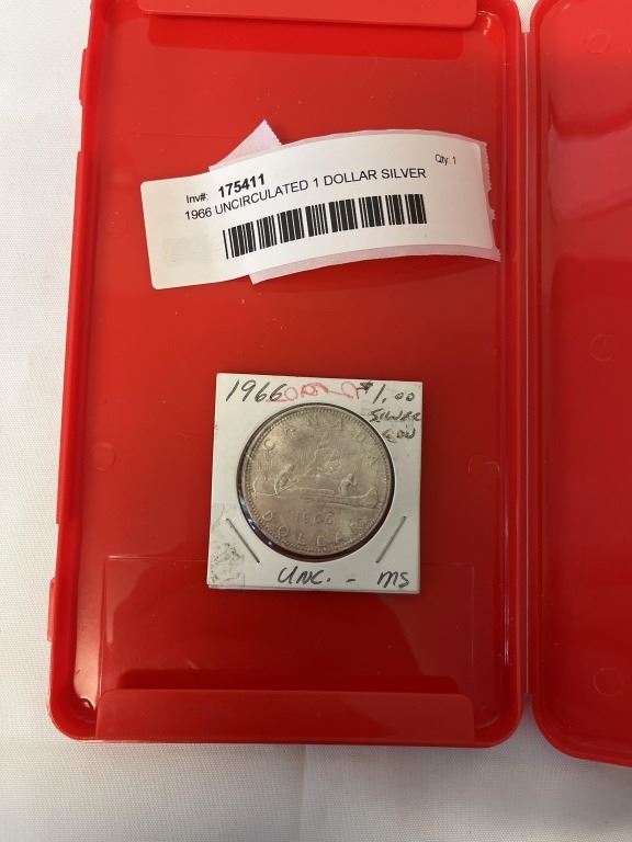 1966 UNCIRCULATED 1 DOLLAR SILVER COIN