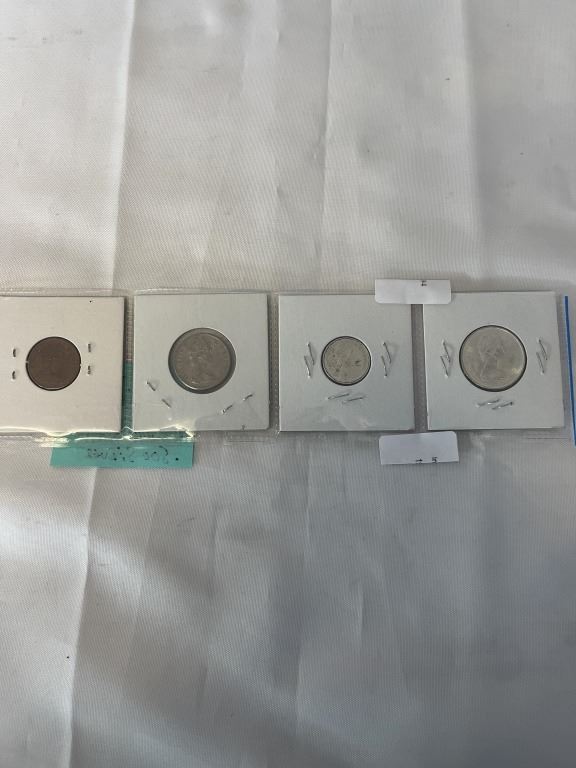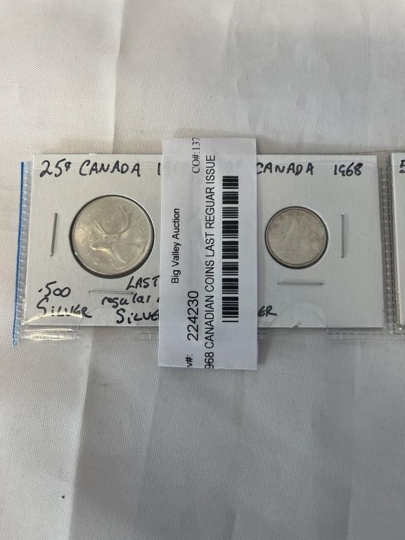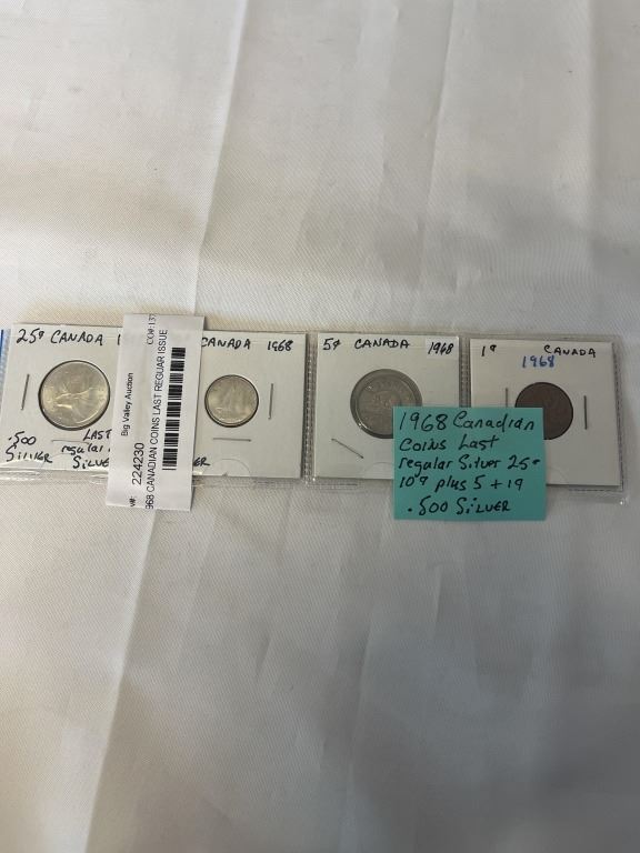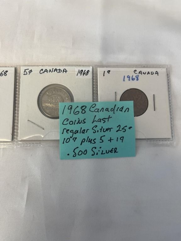 1968 CANADIAN COINS LAST REGUAR ISSUE SILVER 25 CENT AND 10 CENT PLUS 5 CENT AND 1 CENT .800 SILVER