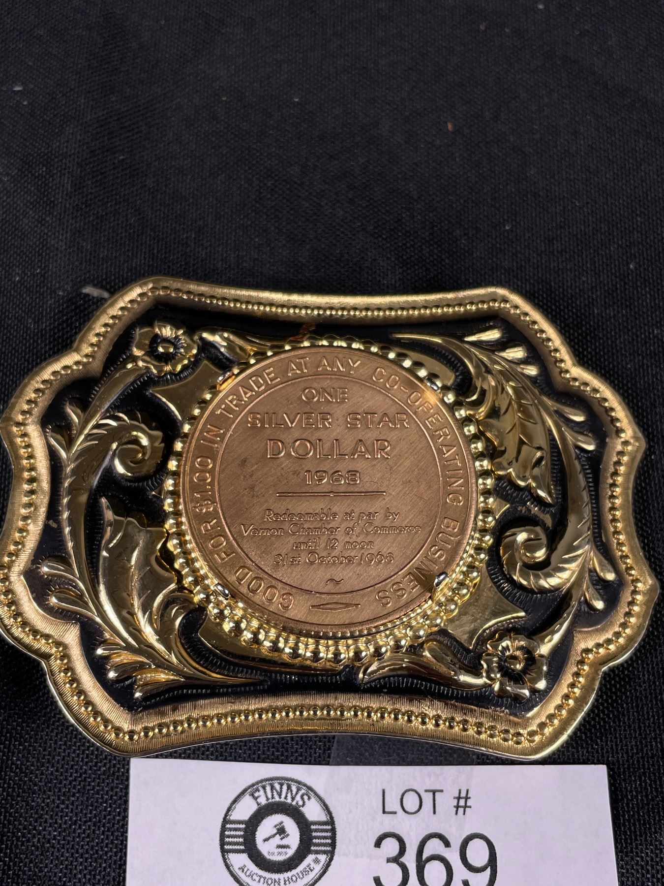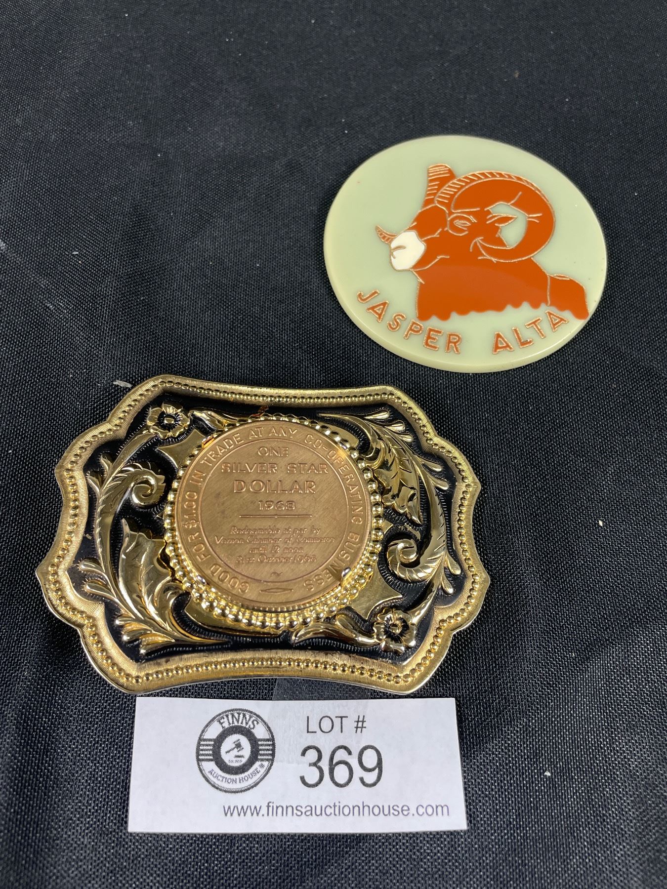 1968 Silver Star Dollar Belt Buckle & Jasper Alberta Vintage Emblem