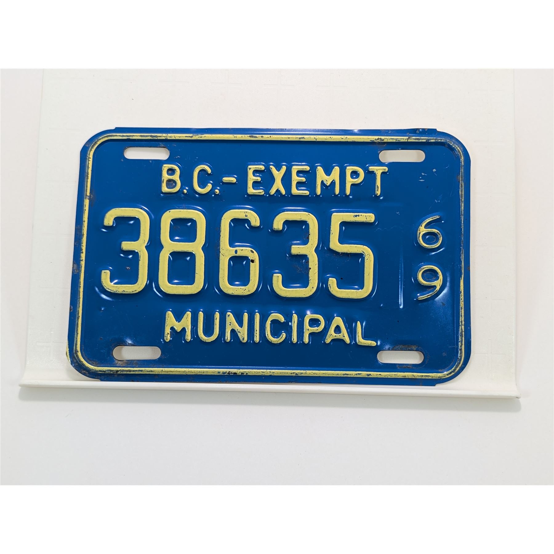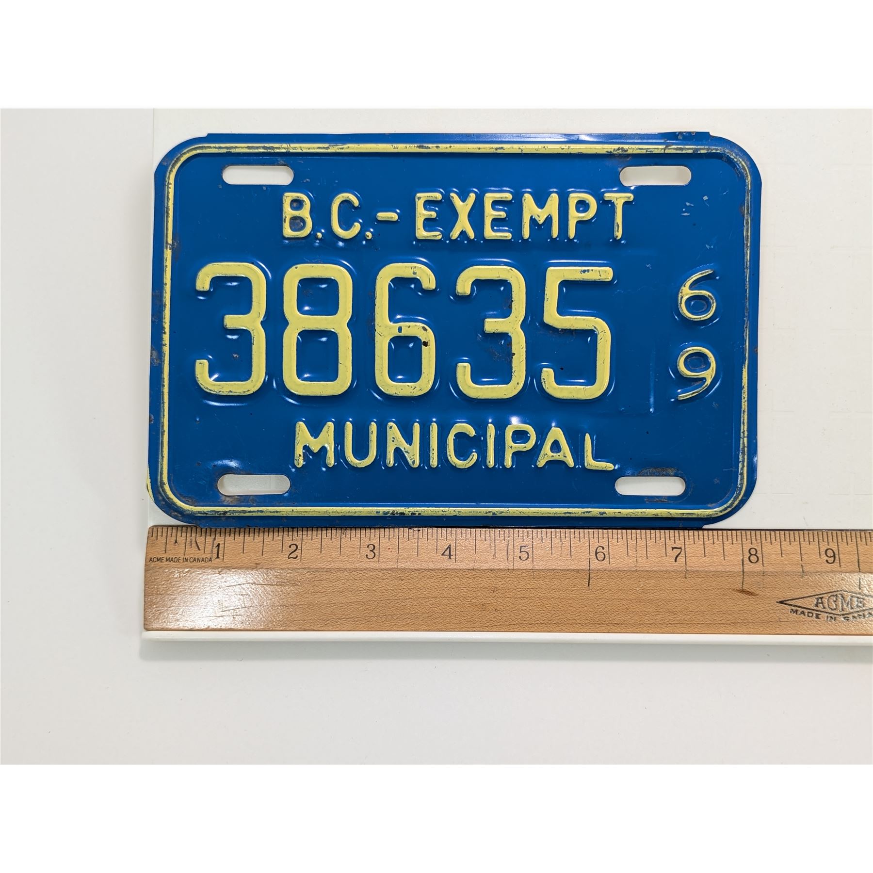 1969 BC - EXEMPT MUNICIPAL LICENSE PLATE