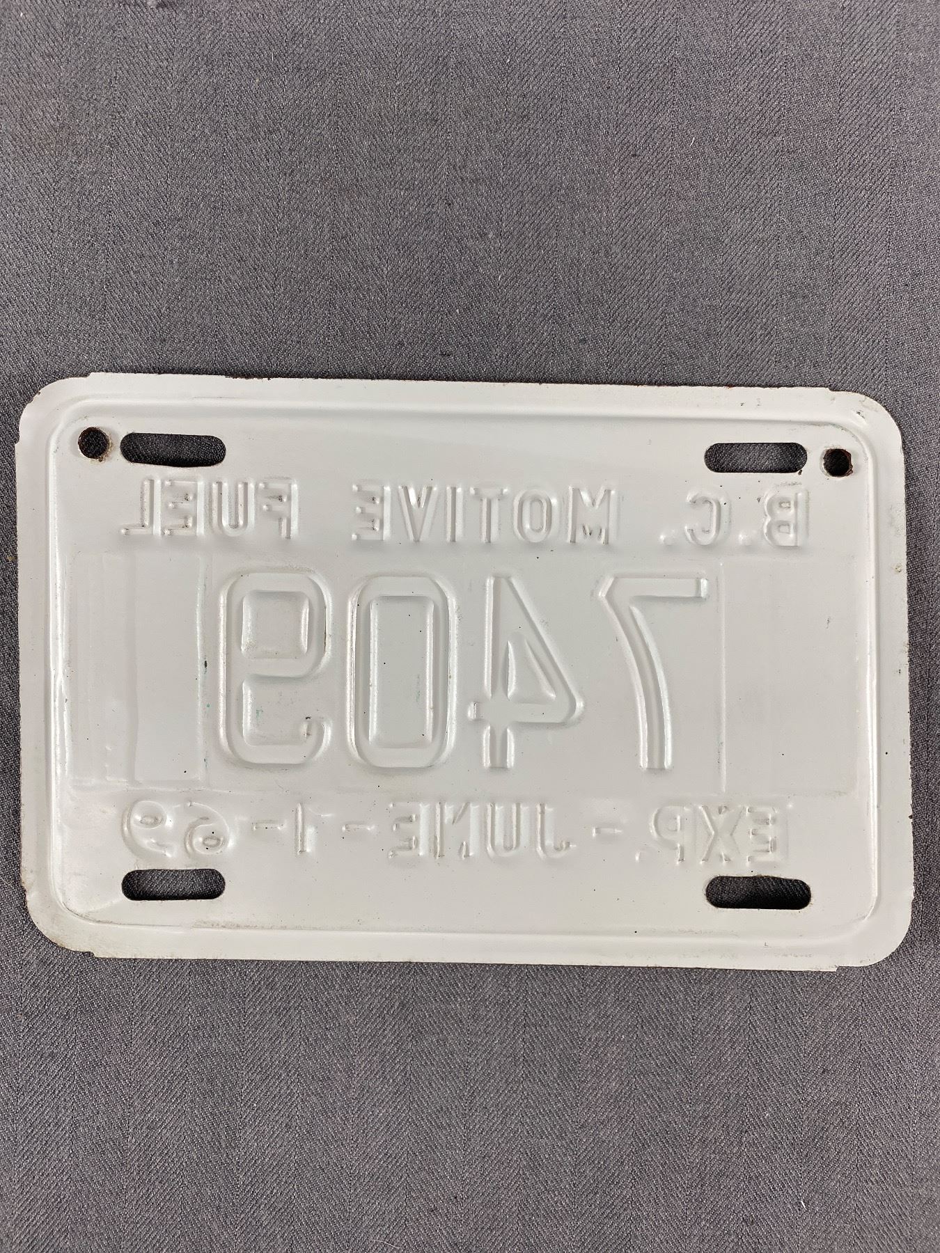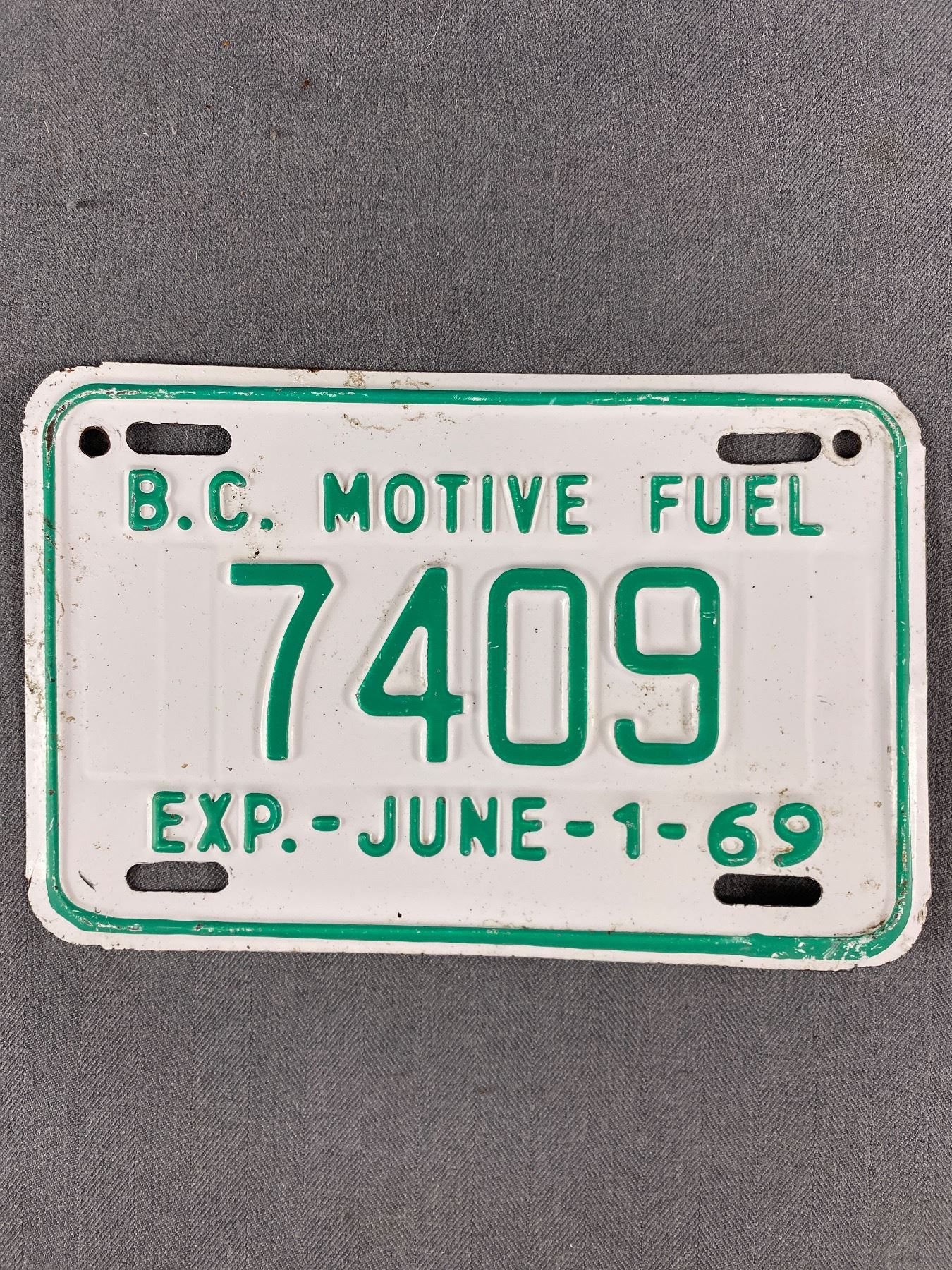 1969 British Columbia Motive Fuel License Plate w/ Expire Date