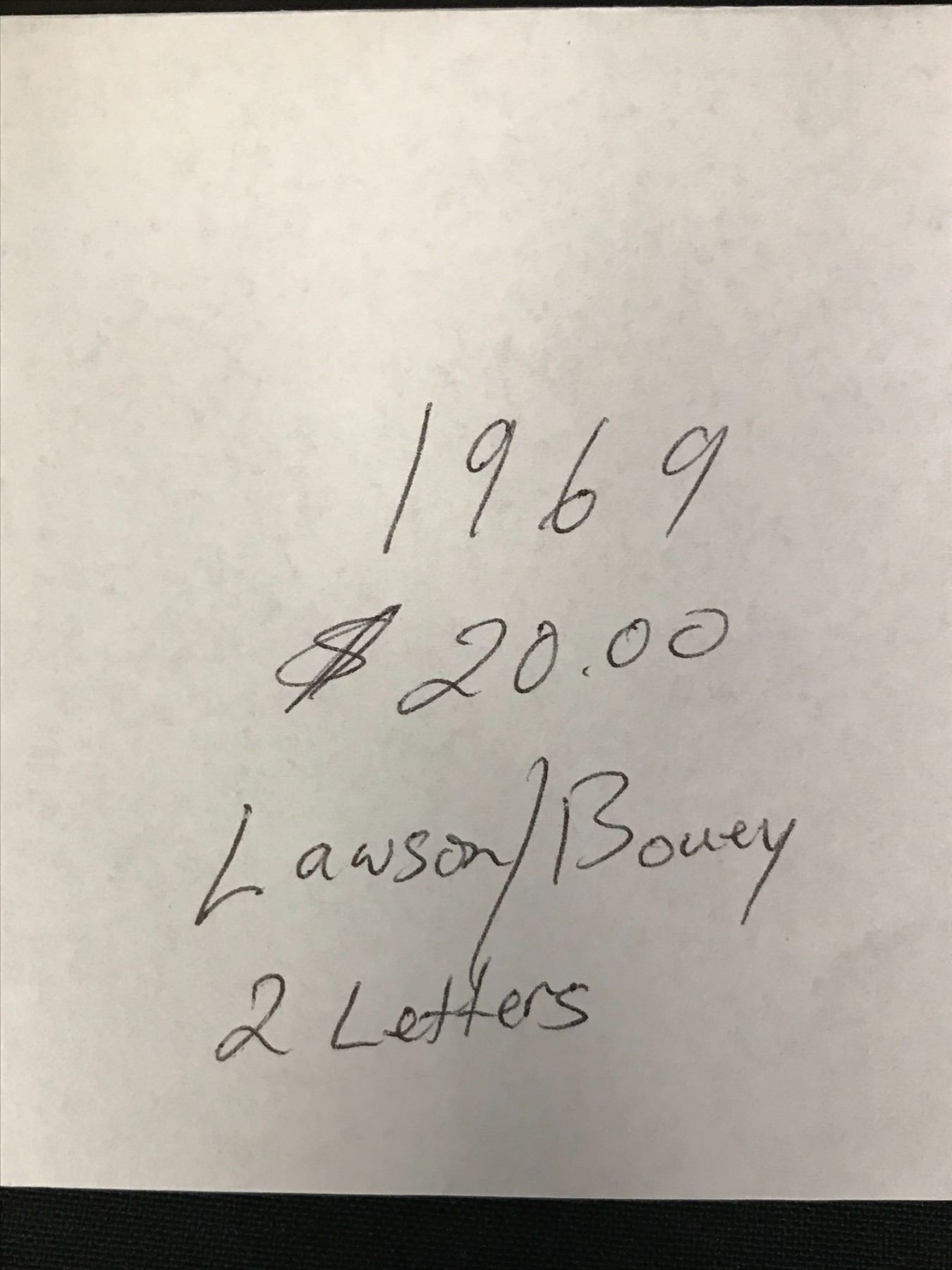 1969 CANADIAN 2 LETTERS $20.00 SIGNATURES LAWSON/BOUEY