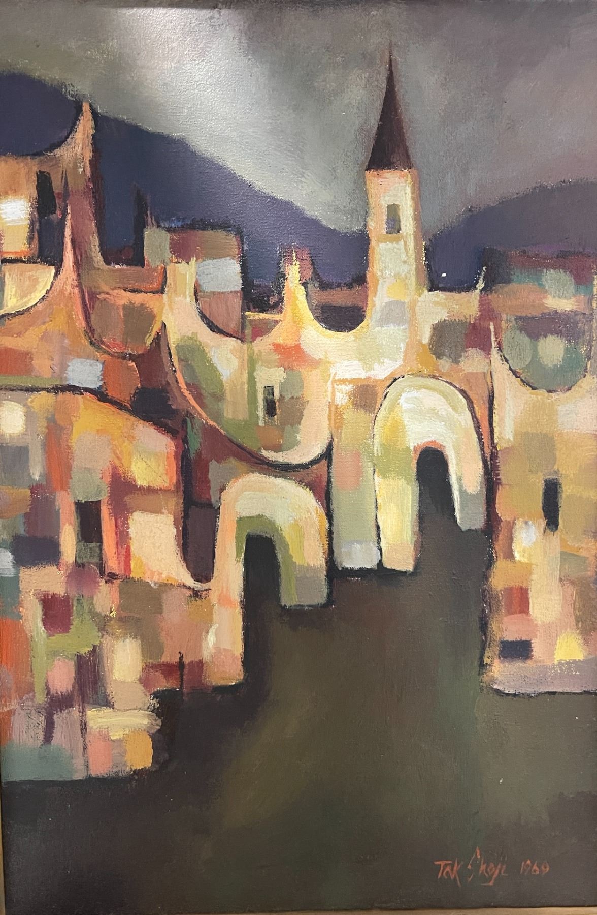 1969 Original Tok Shoji Oil on Canvas Painting - 16" x 23" framed