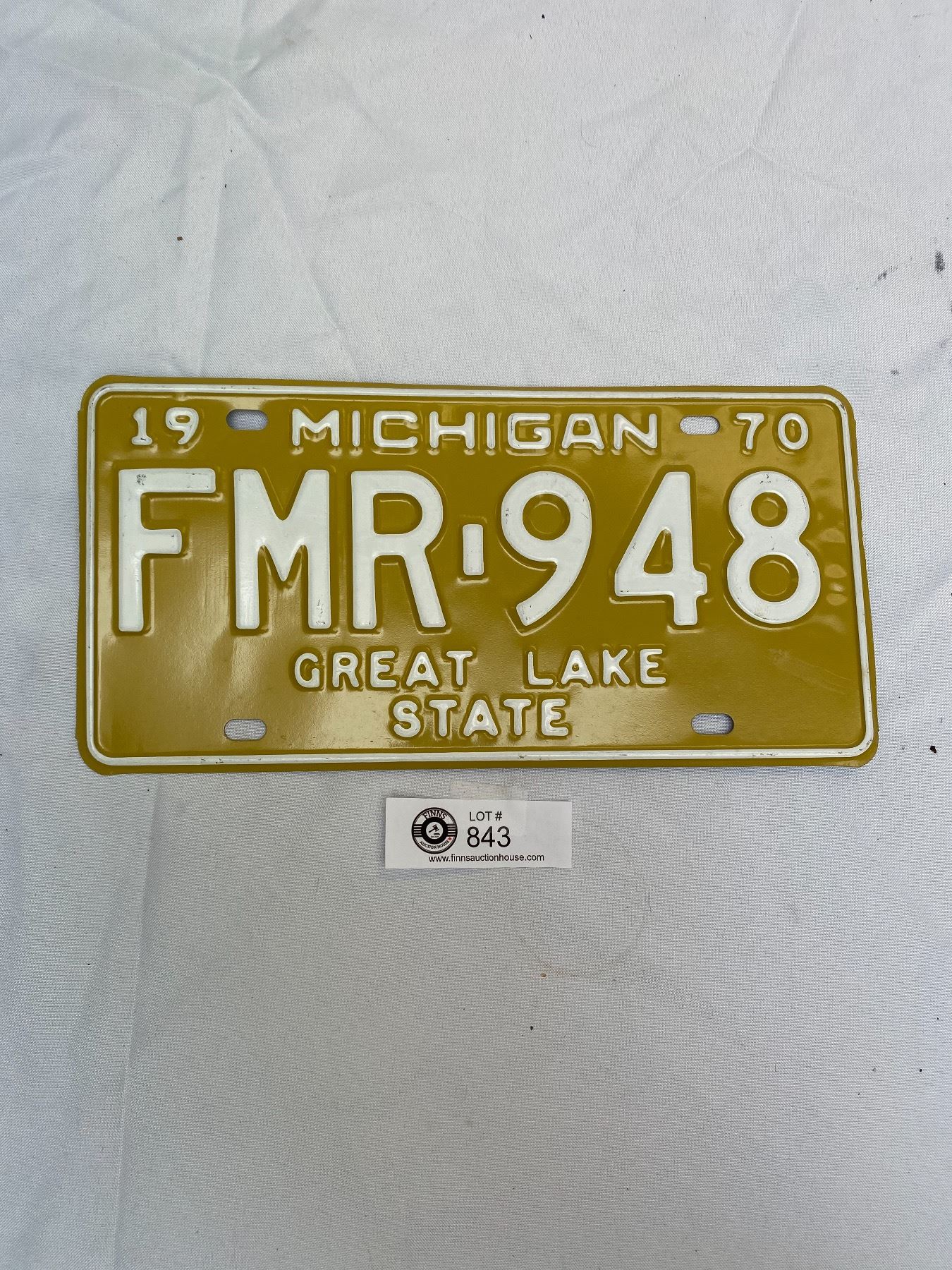 1970 Michigan " Great Lake State" License Plate in Very Good Condition