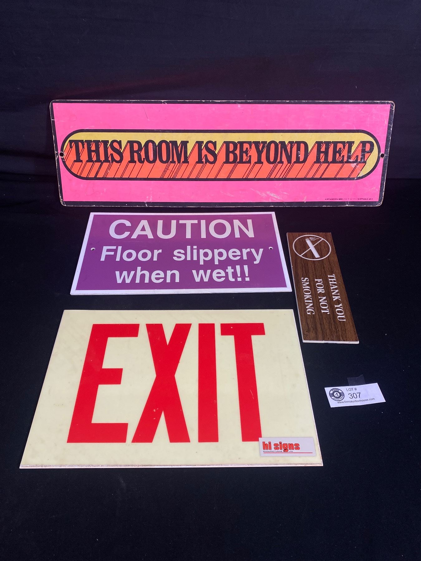 1971 Black Light Sign, Caution Sign, Exit, No Smoking