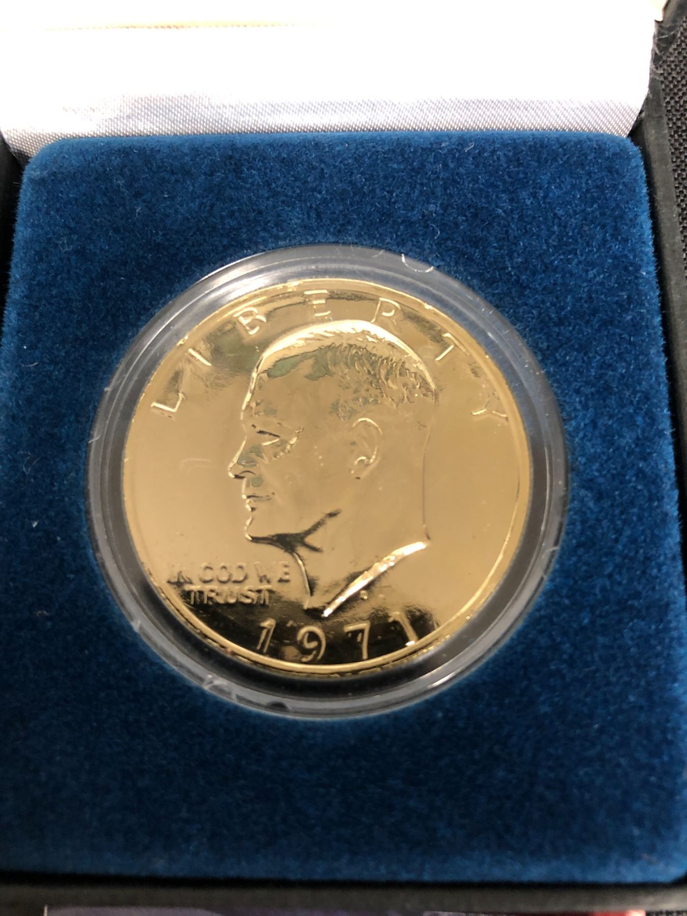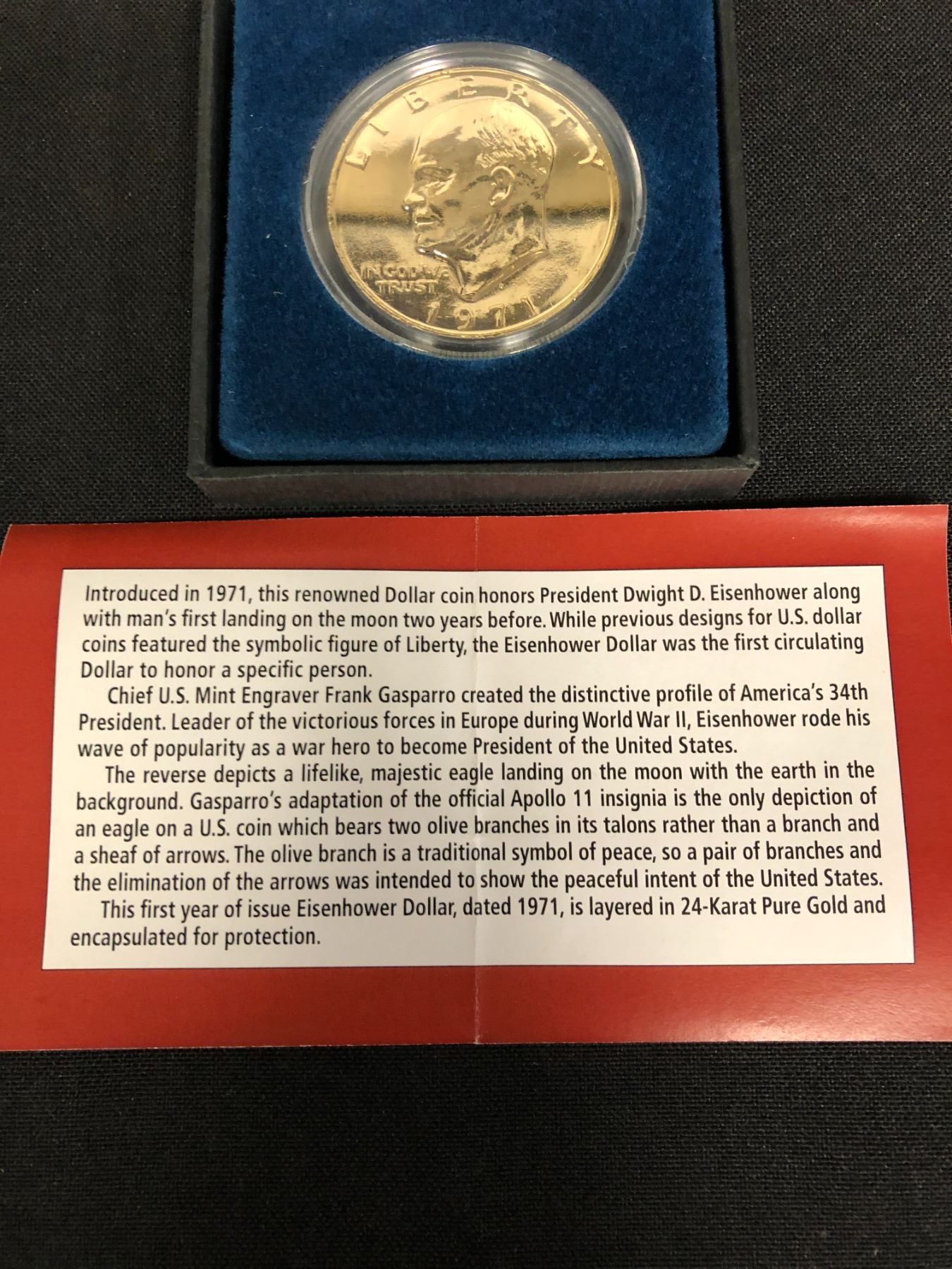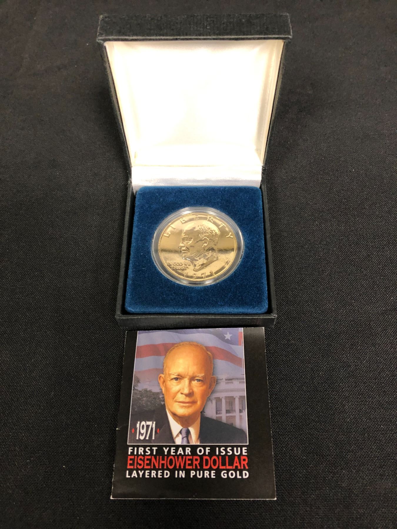 1971 FIRST YEAR OF ISSUE OF THE EISENHOWER DOLLAR LAYERED WITH PURE GOLD WITH BOX AND COA