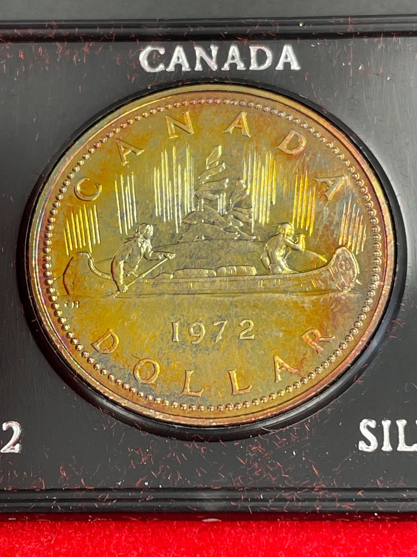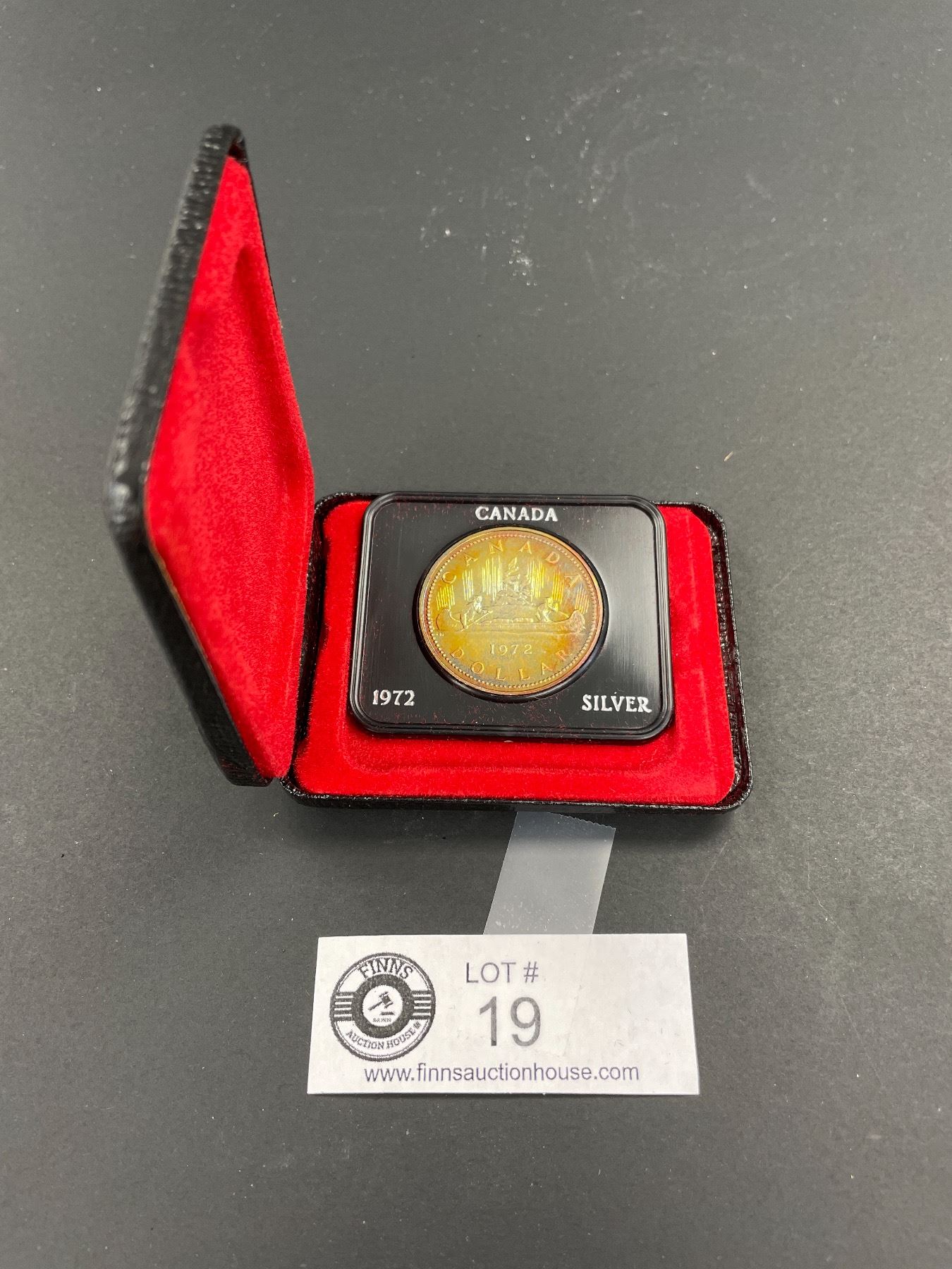 1972 Canadian Silver Dollar in Clam Case Nice Toning