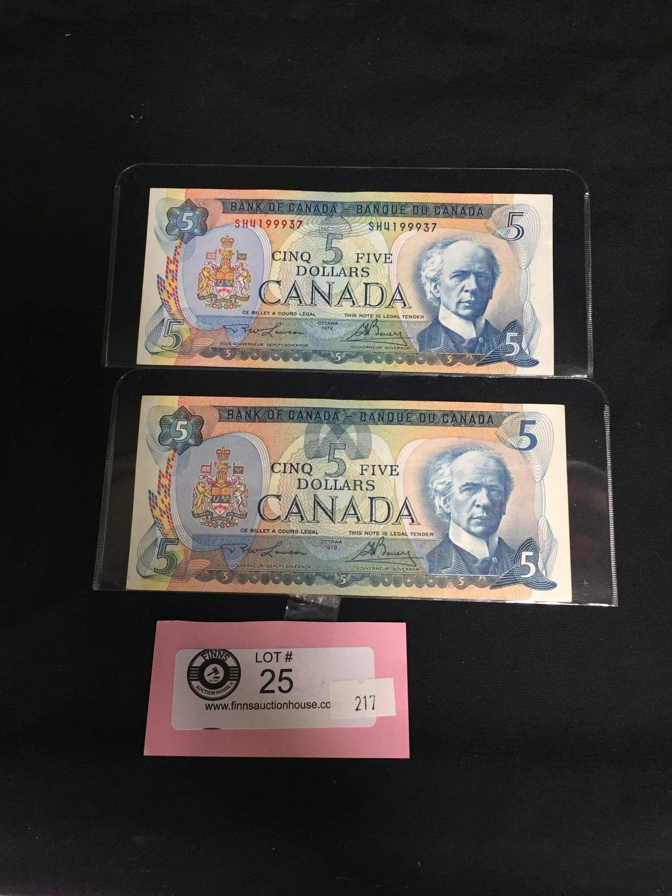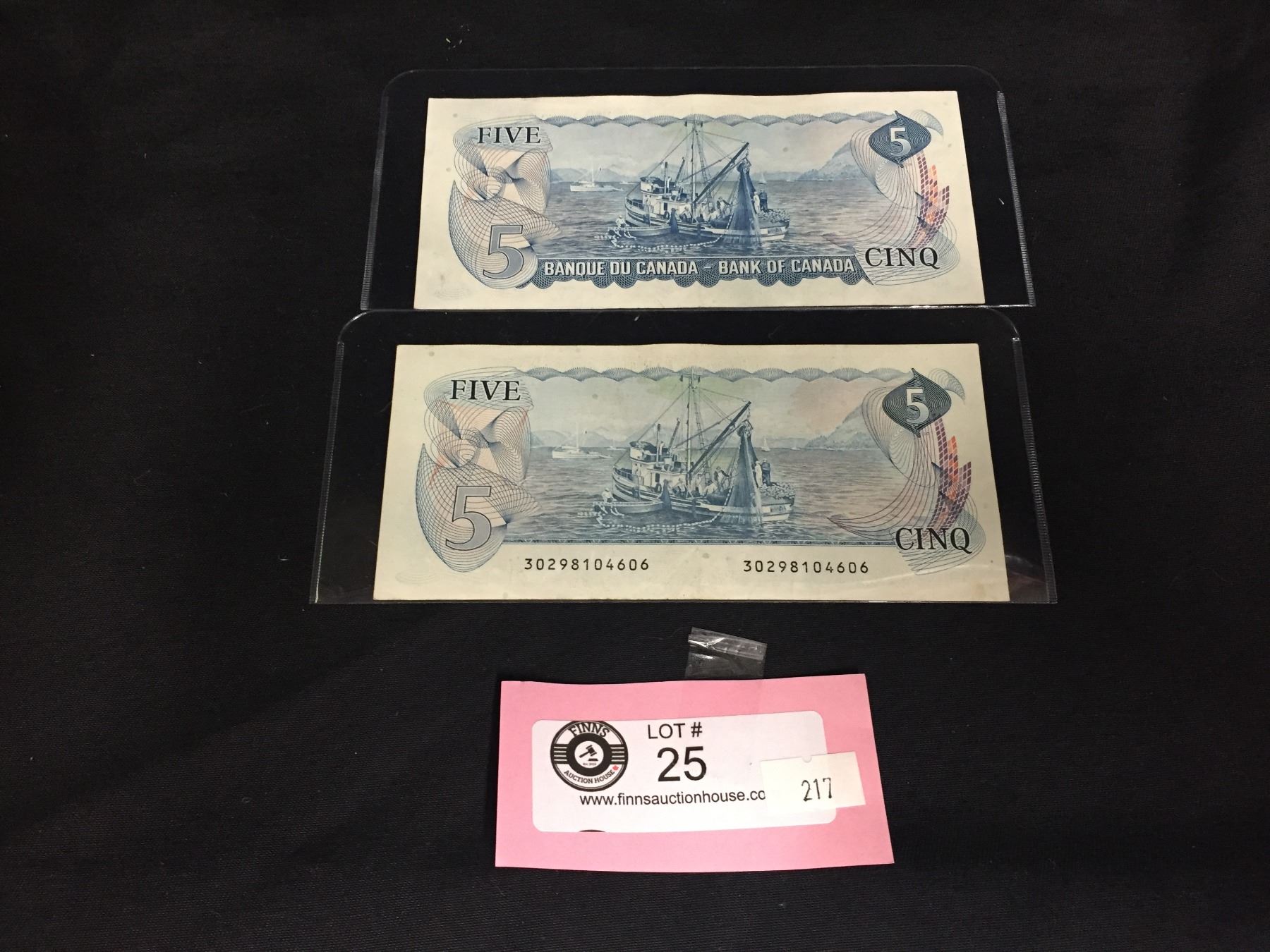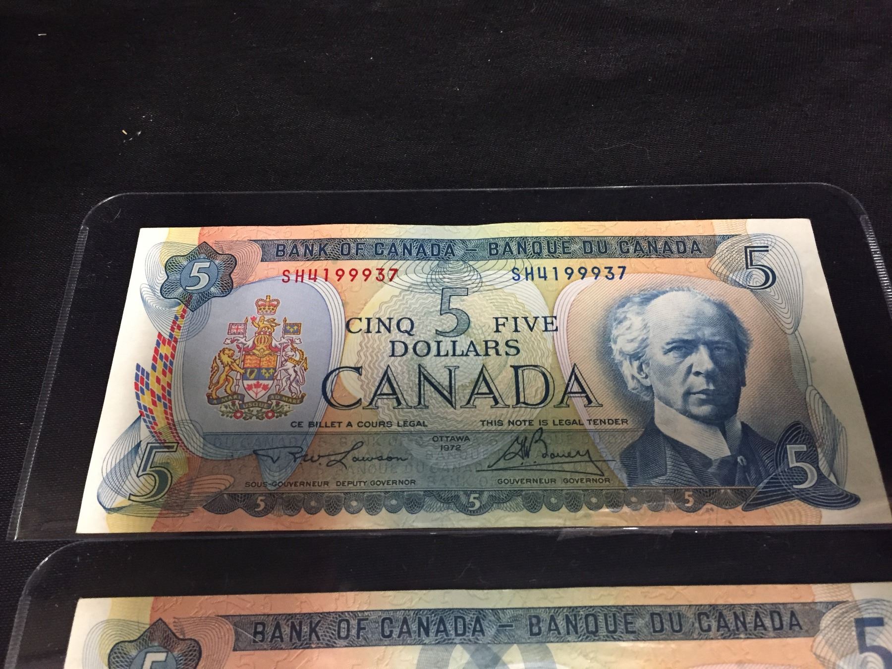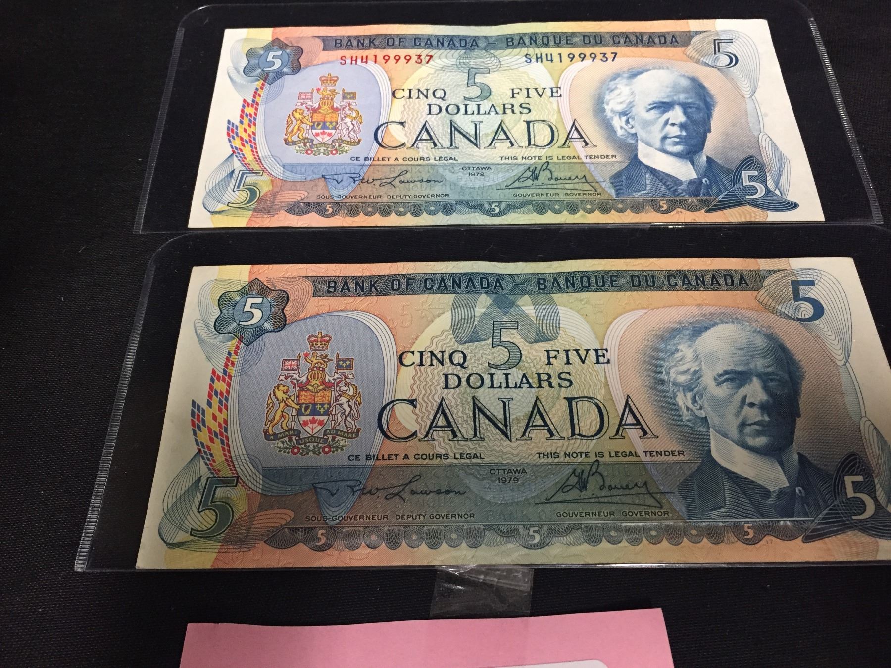 1972 and 1979 $5 Banj if Canada Notes in Sleeves