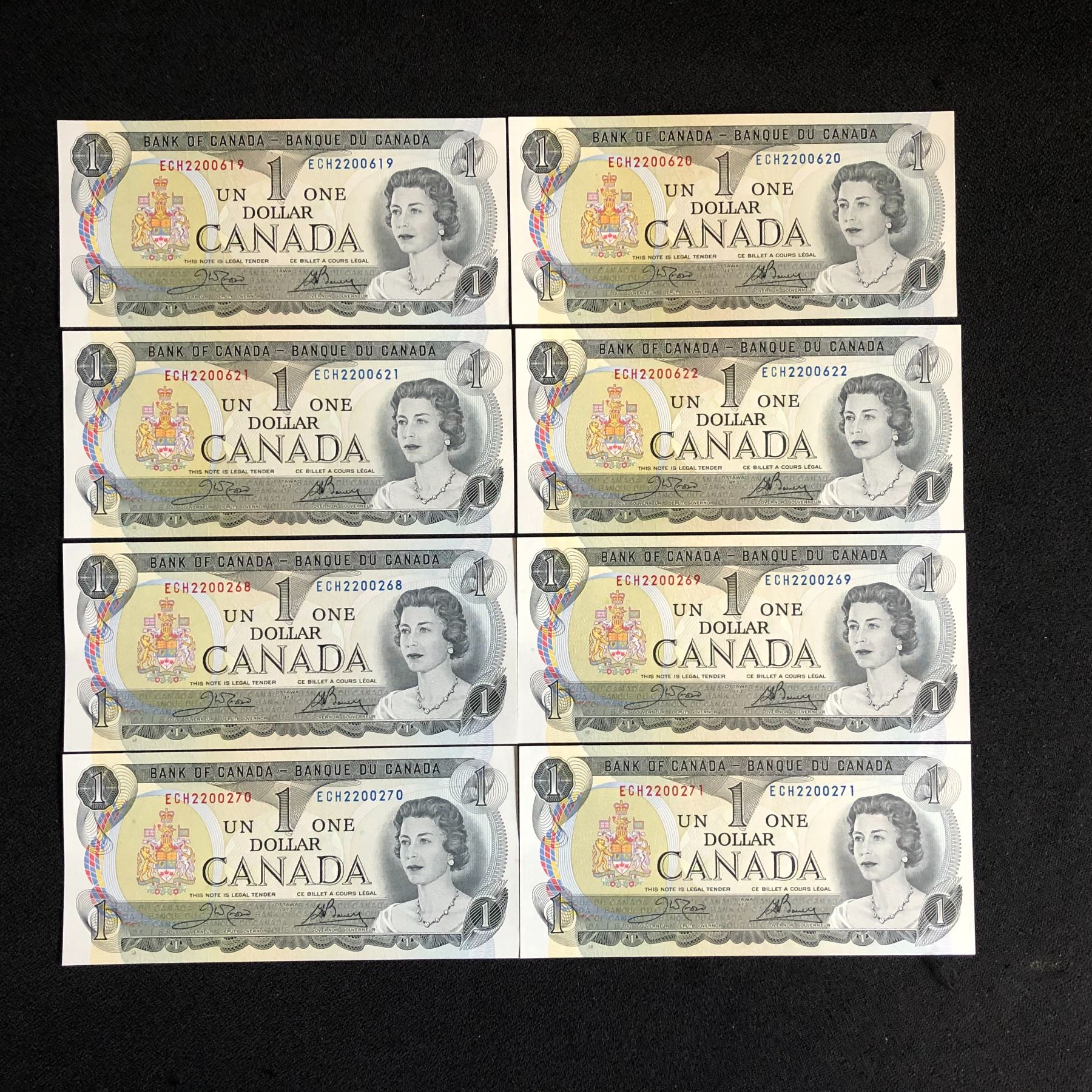 1973 $1 UNCIRCULATED SEQUENTIAL CANADIAN BANK NOTES
