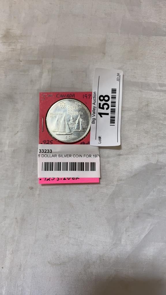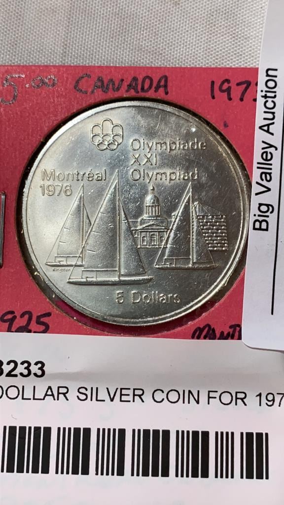 1973 5 DOLLAR SILVER COIN FOR 1976 MONTREAL OLYMPICS .925 SILVER