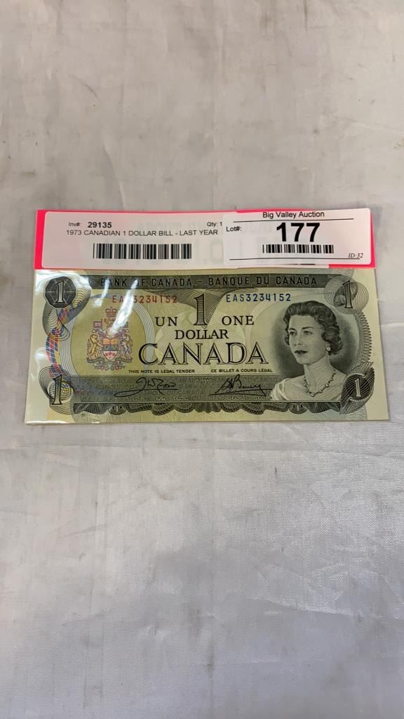 1973 CANADIAN 1 DOLLAR BILL - LAST YEAR OF ISSUE
