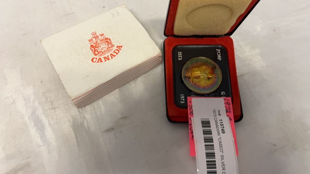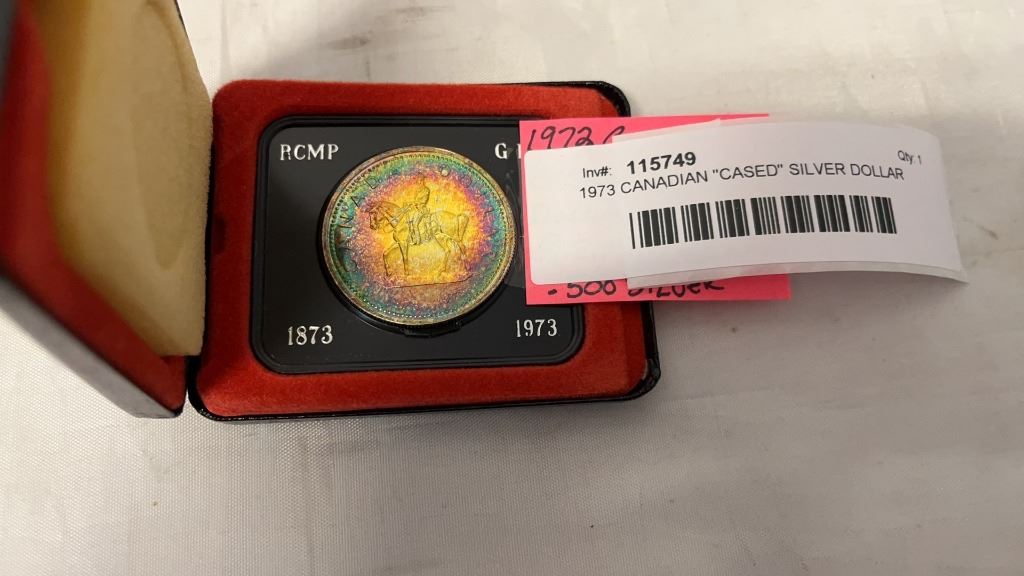 1973 CANADIAN "CASED" SILVER DOLLAR 100TH ANNIVERSARY RCMP 1873-1923 .500 SILVER