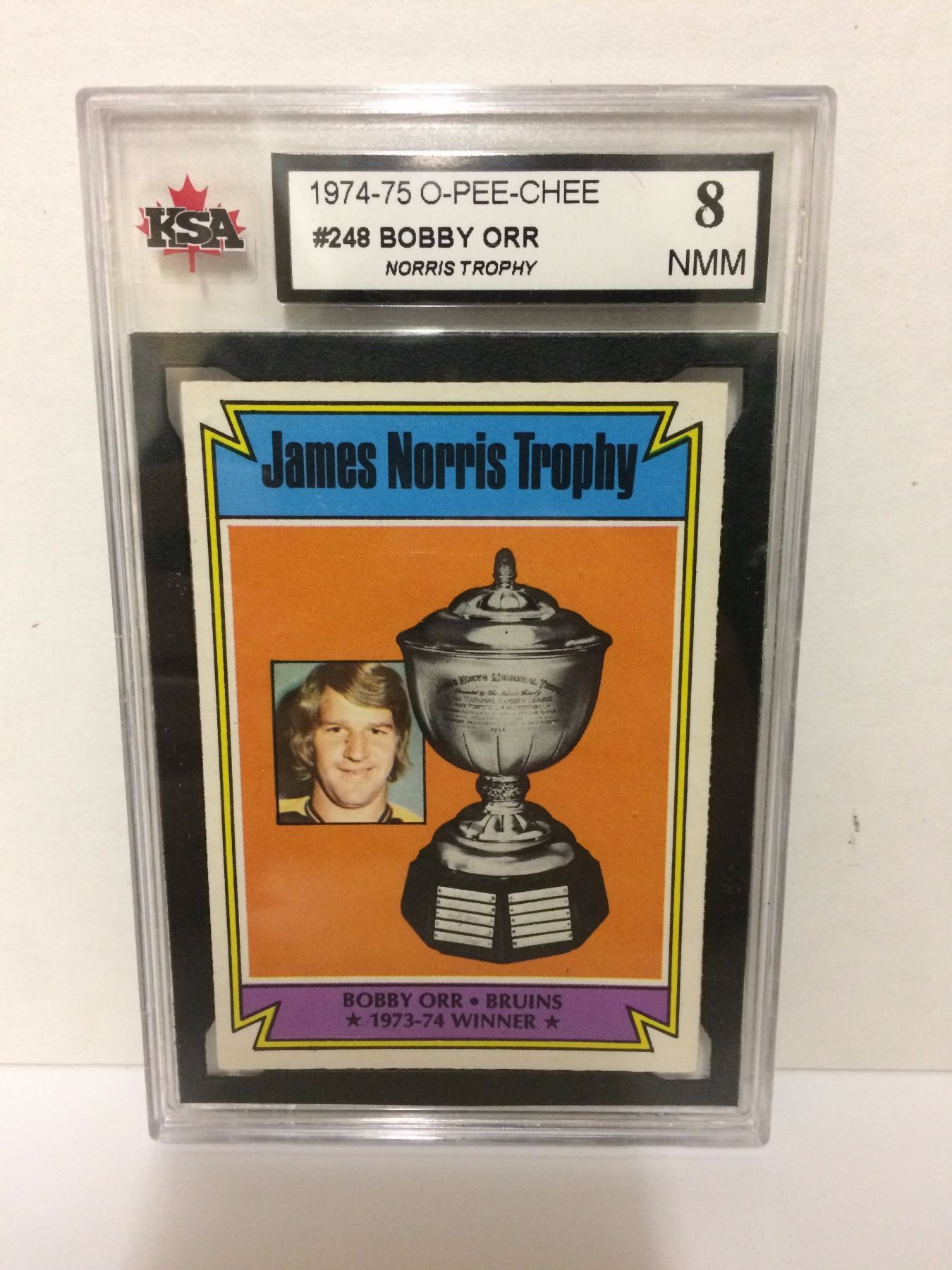 1974-75 BOBBY ORR #248 O-PEE-CHEE NORRIS TROPHY HOCKEY TRADING CARD (8 NMM)